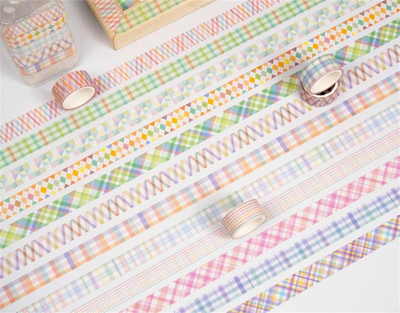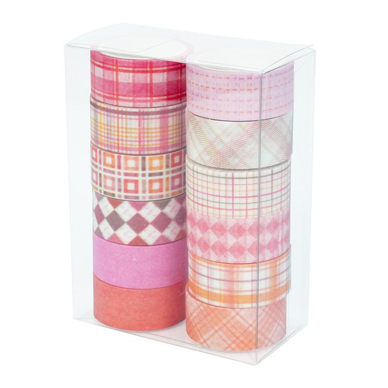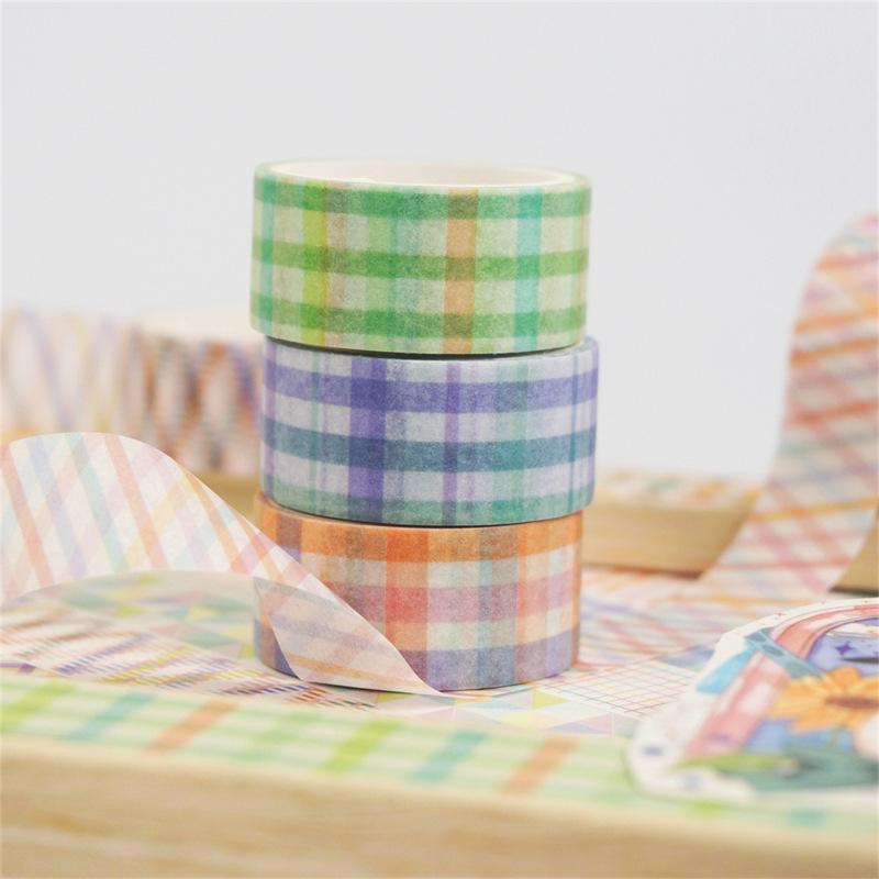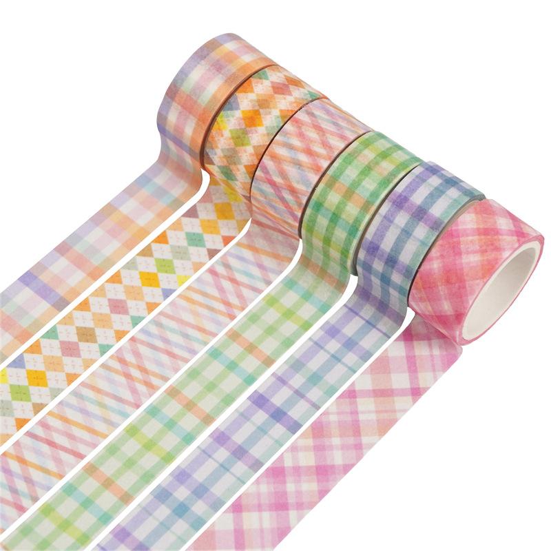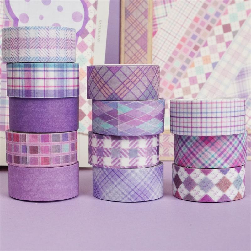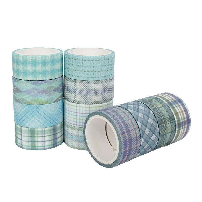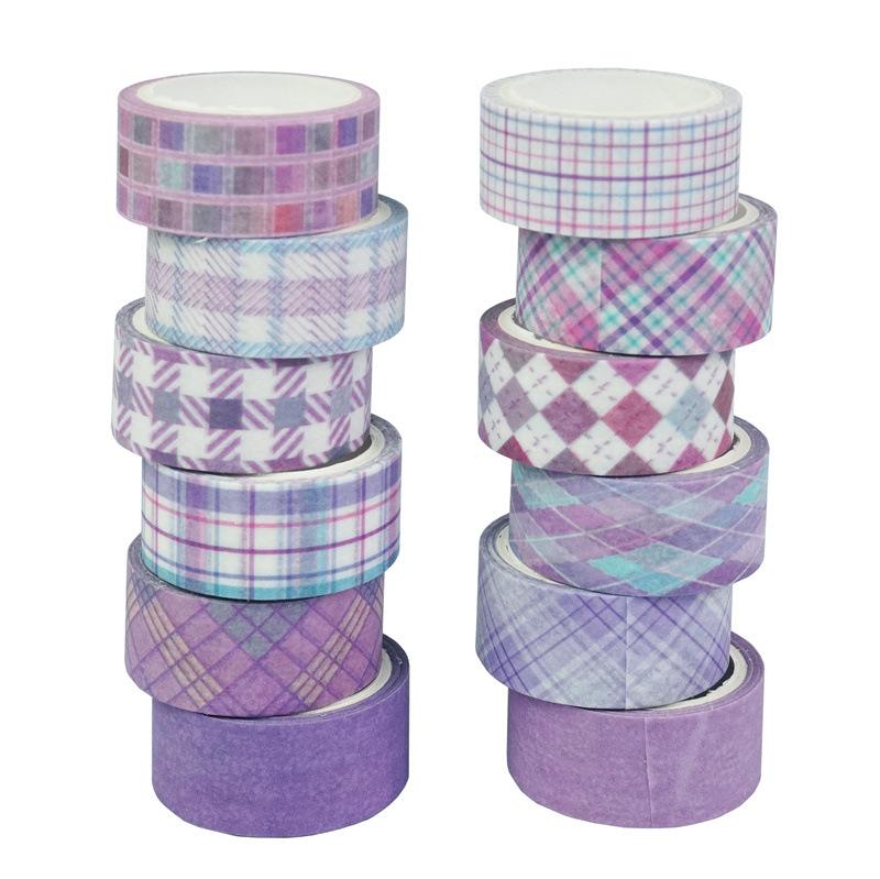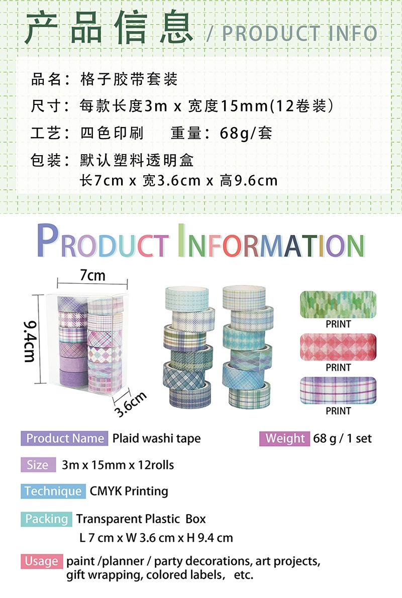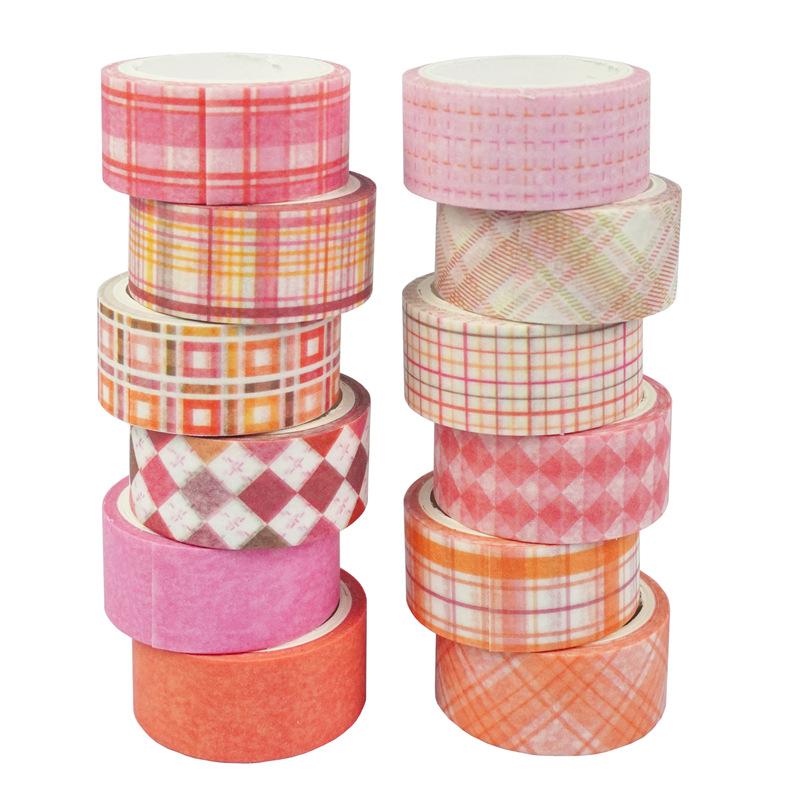 Adesivos Transfronteiriços, Fita Xadrez 12 Rolos, Fita Decorativa DIY para Diário, Suprimento para Exportação Fita Washi