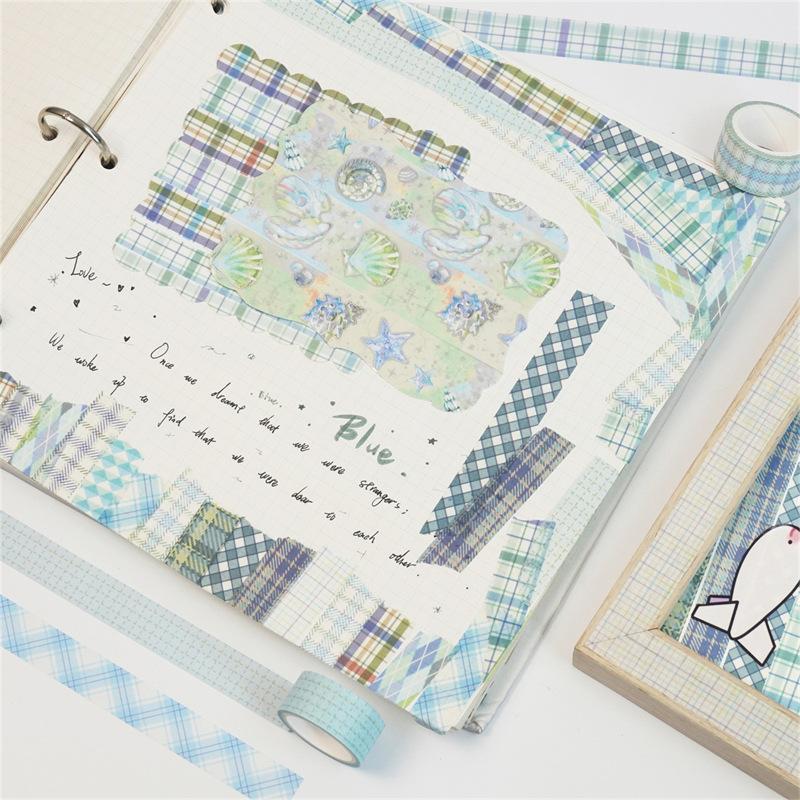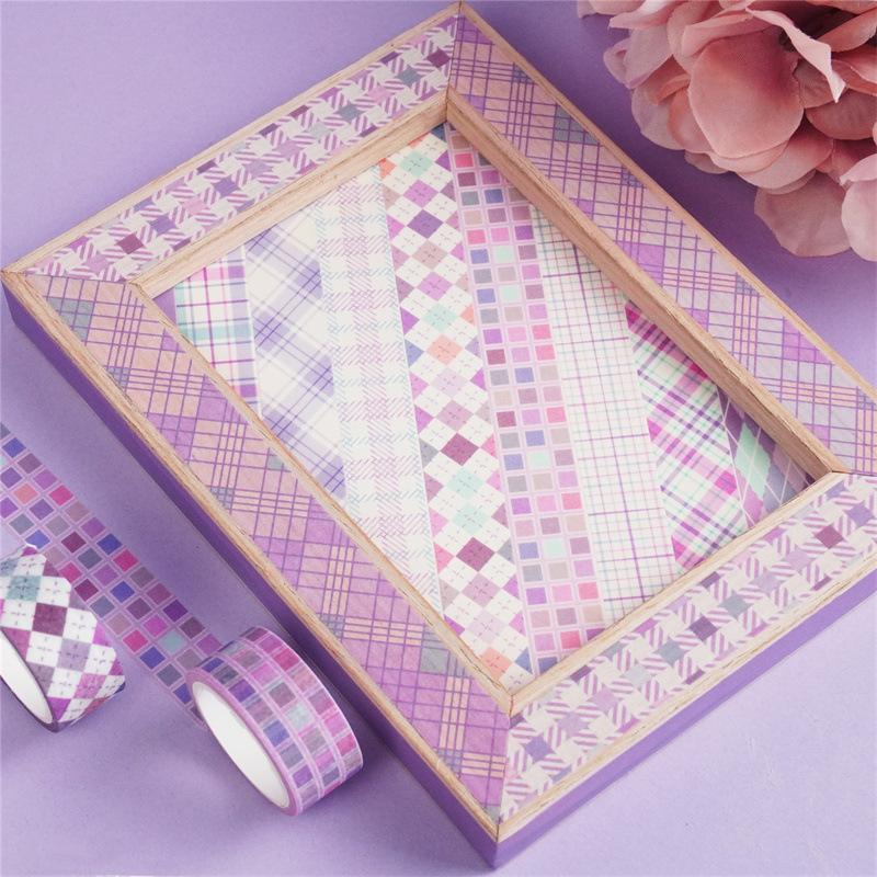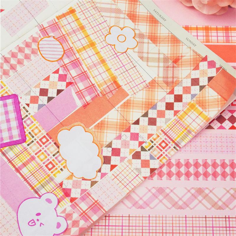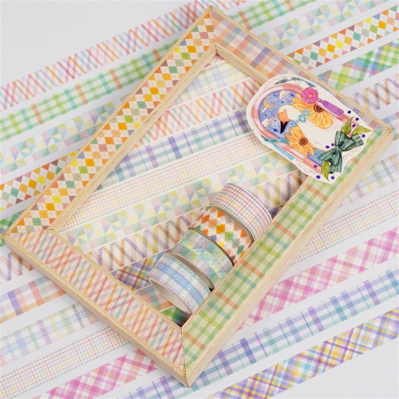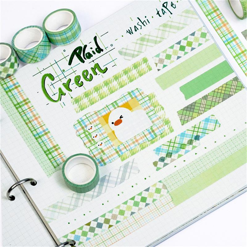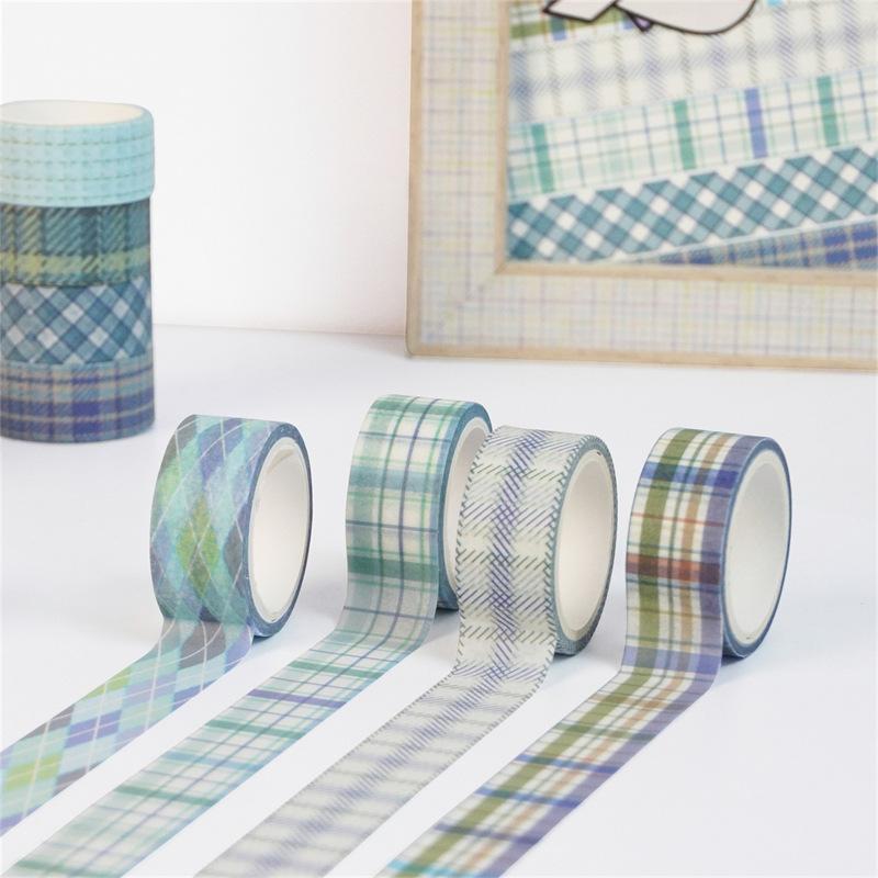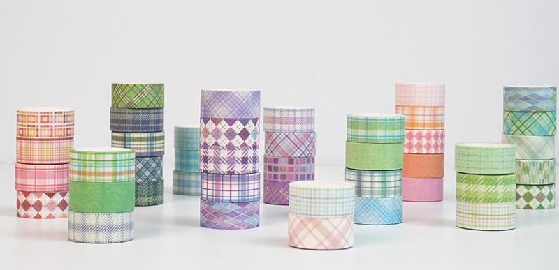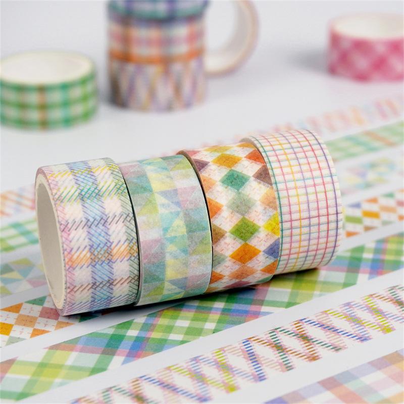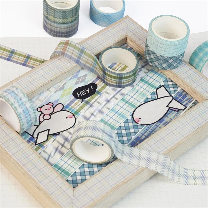 Adesivos Transfronteiriços, Fita Xadrez 12 Rolos, Fita Decorativa DIY para Diário, Suprimento para Exportação Fita Washi