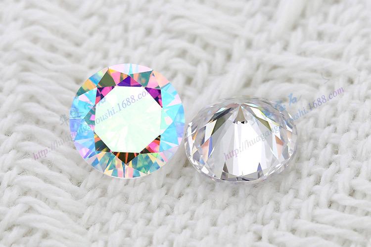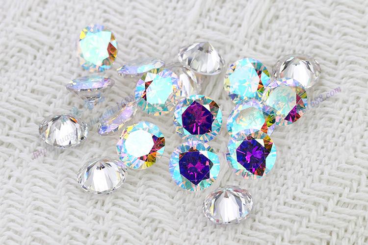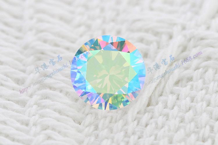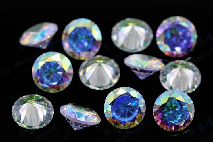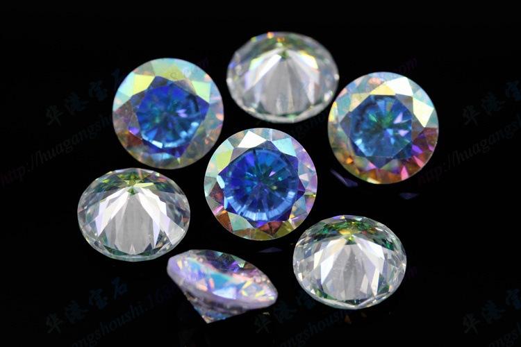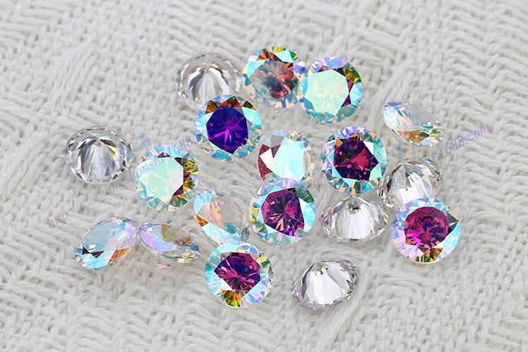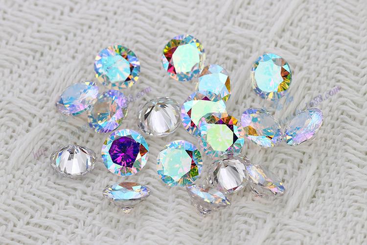 Huagang Gem Redondo Banhado AB Cor Zircon Pedra Nua Atacado Banhado AB Cor Pedra Branca Sete Cores Gema Artificial