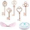 Cinco 10 cada rosa de ouro vintage chave pingente com asas de libélula linha de cristal festa diy decoração de presente