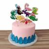 Decoração de bolo de aniversário de desenho animado gatinho rosa acessórios de decoração de bolo de aniversário sem base conjunto de 6 peças
