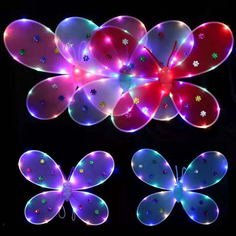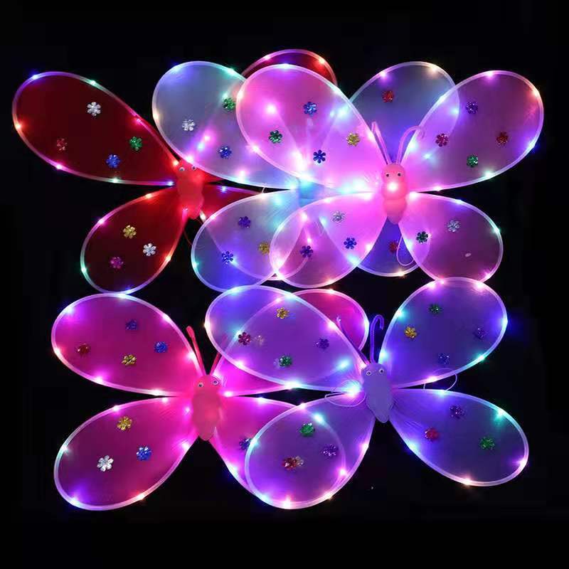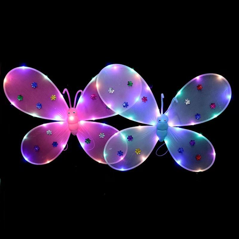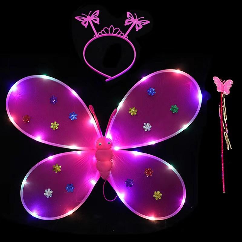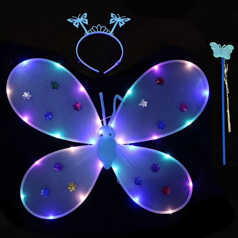 Nova Listagem de Asas de Borboleta com Luz Presente Requintado Asas de Anjo Fada Vara Cabeça Fivela de Três Peças Set Back Wings