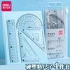 Deli 79514 Conjunto de Réguas para Estudantes Conjunto de Quatro Peças Régua Triangular Régua Transferidor Conjunto Papelaria Transparente Escritório