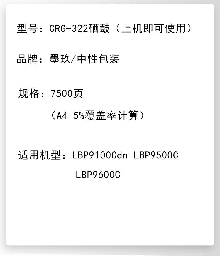 Adequado para cartucho de toner CRG-322 cartucho de toner canon LBP9100Cdn cartucho de toner LBP9500C LBP9600C cartucho de toner de impressora