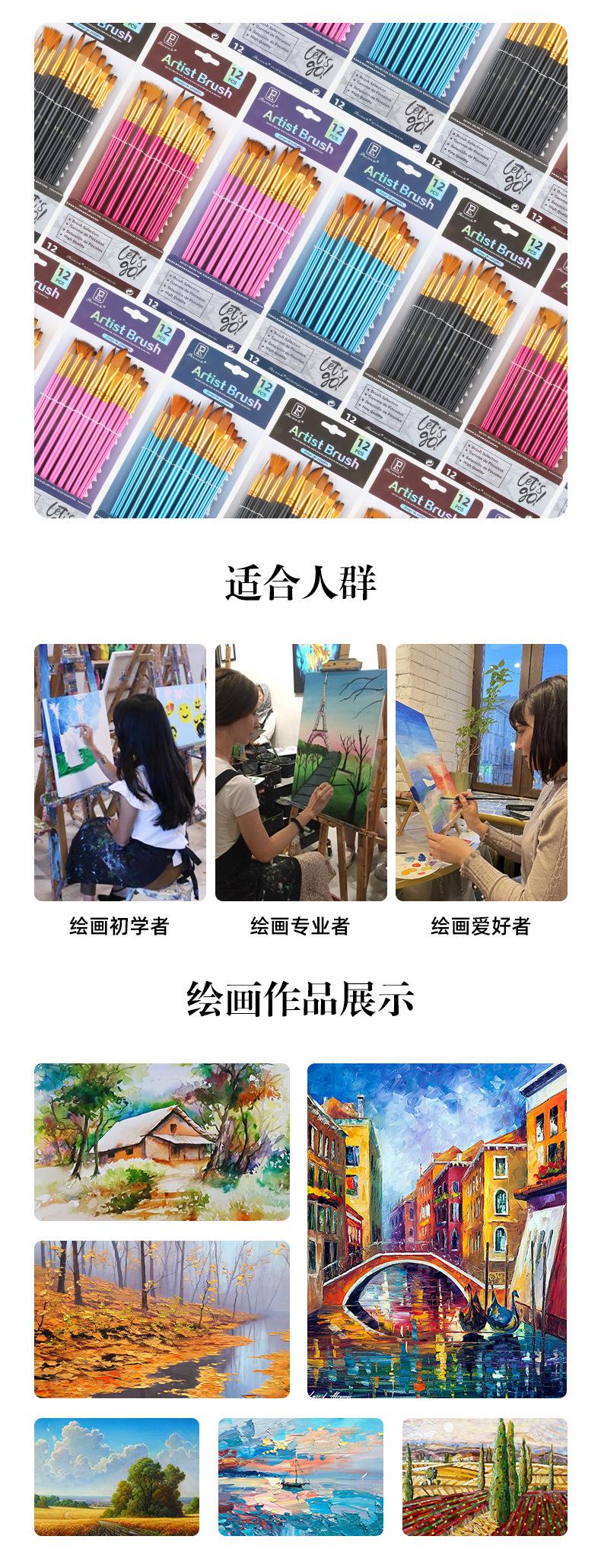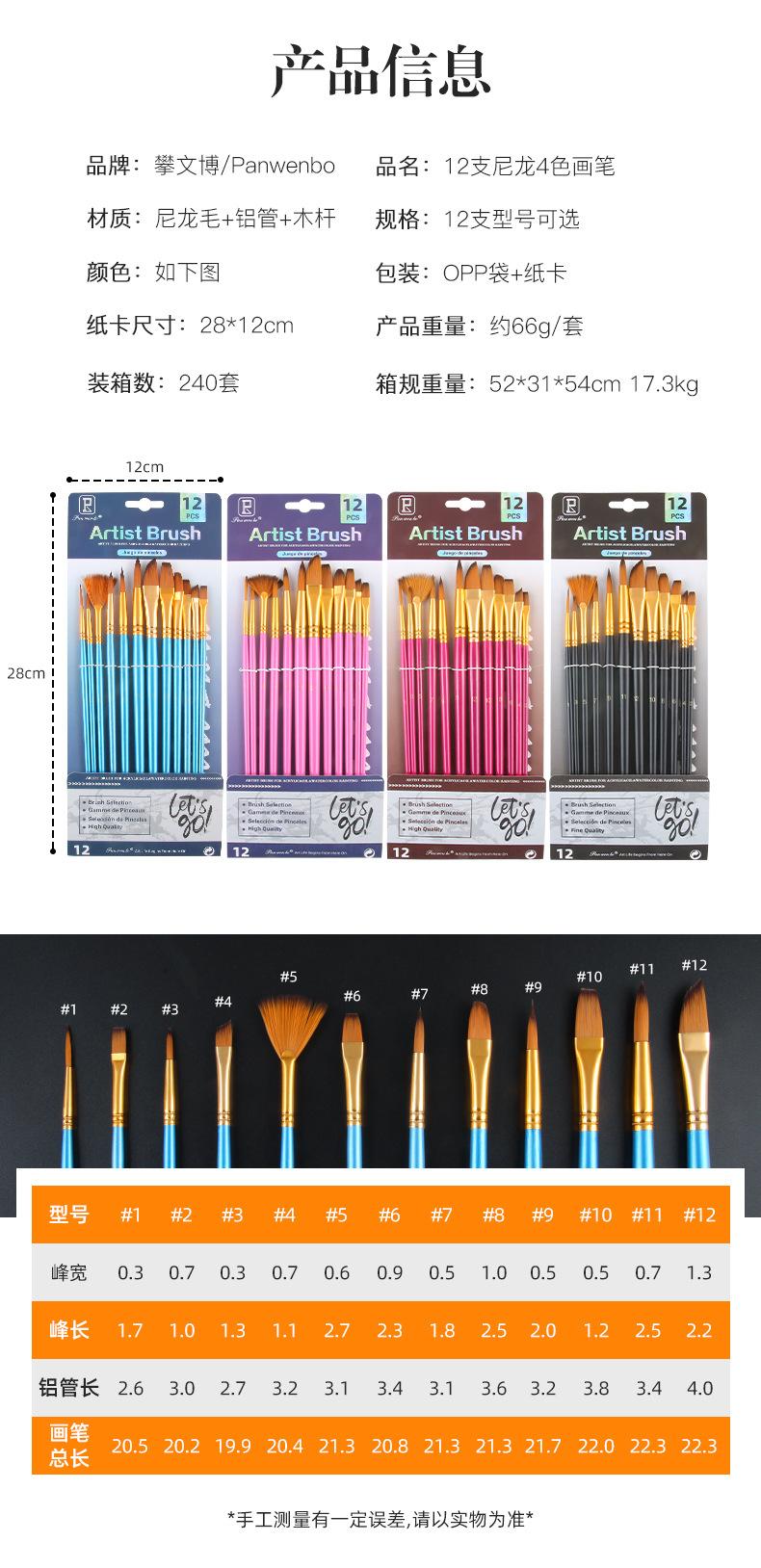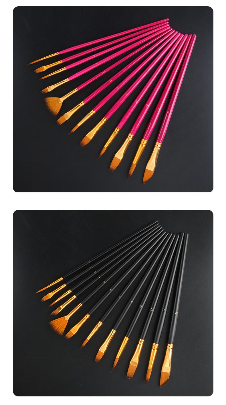 Transfronteiriço Amazon vermelho 12 nylon lã arte escova haste de madeira multiuso aquarela pintura caneta conjunto fábrica atacado
