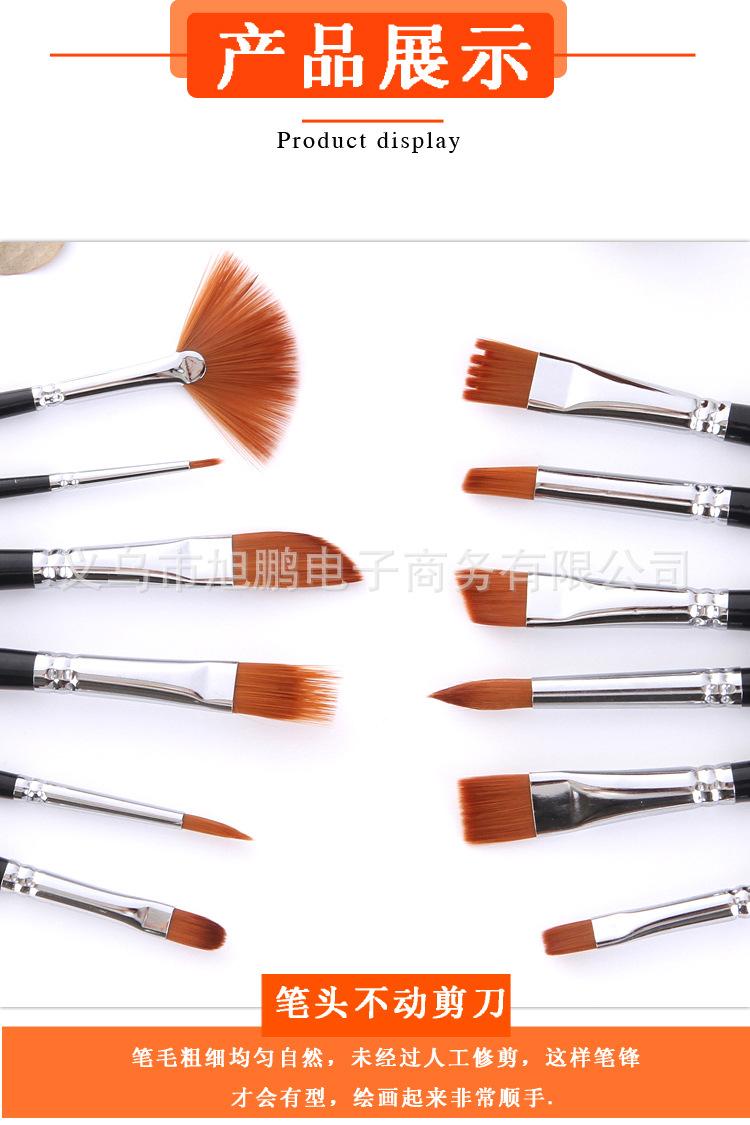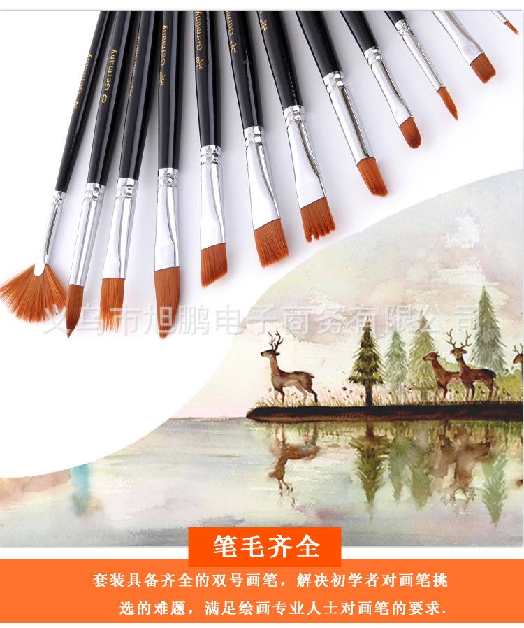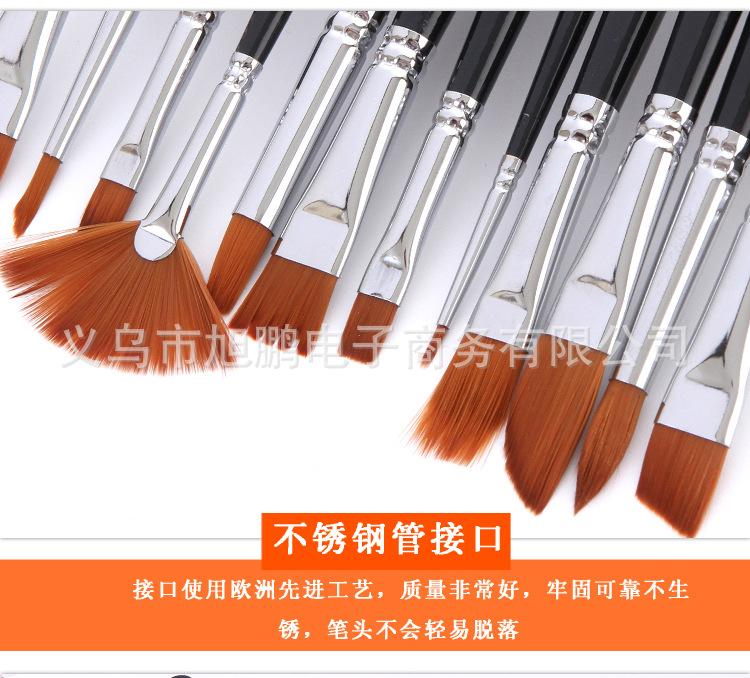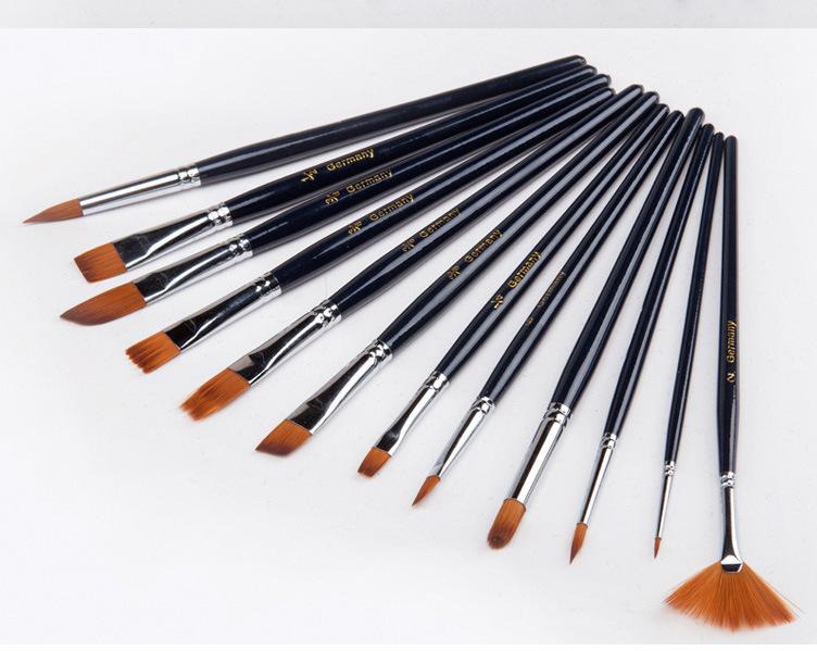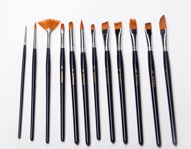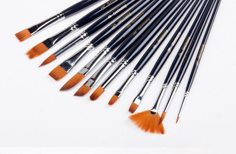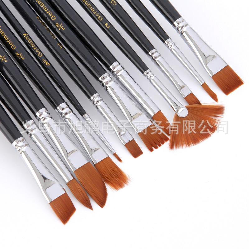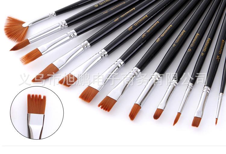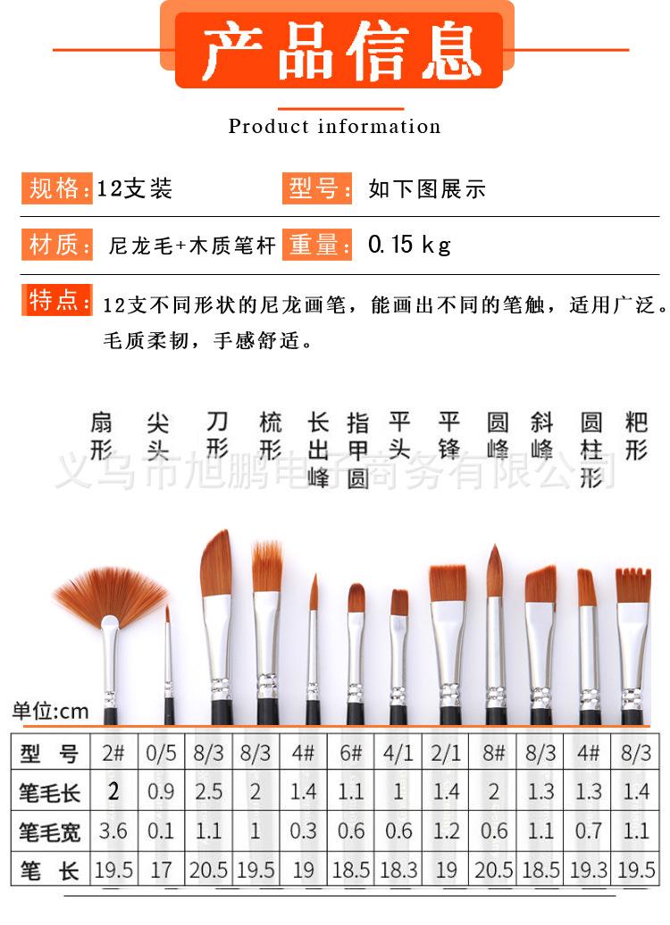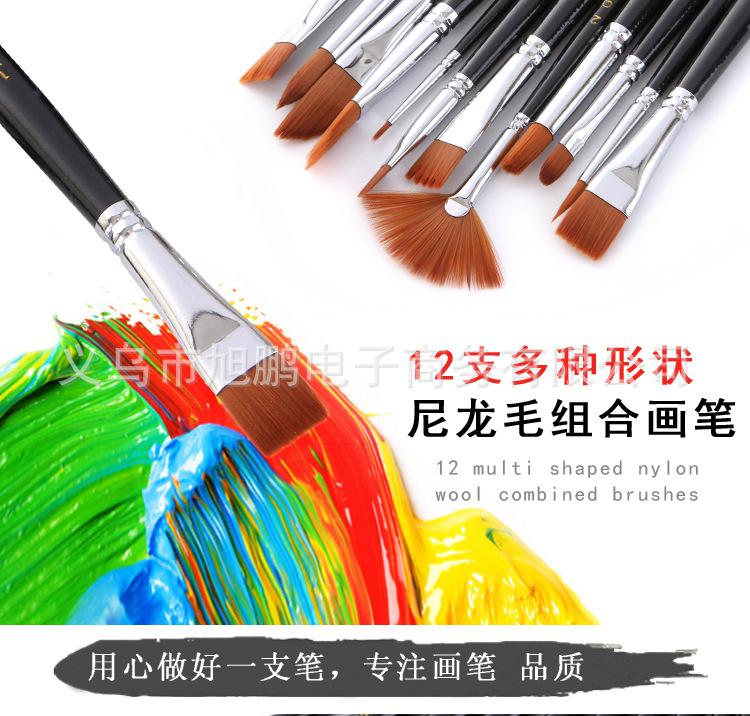 [Características]:12 pincéis de nylon de diferentes formatos, pincéis de guache e acrílico, de alta qualidade
