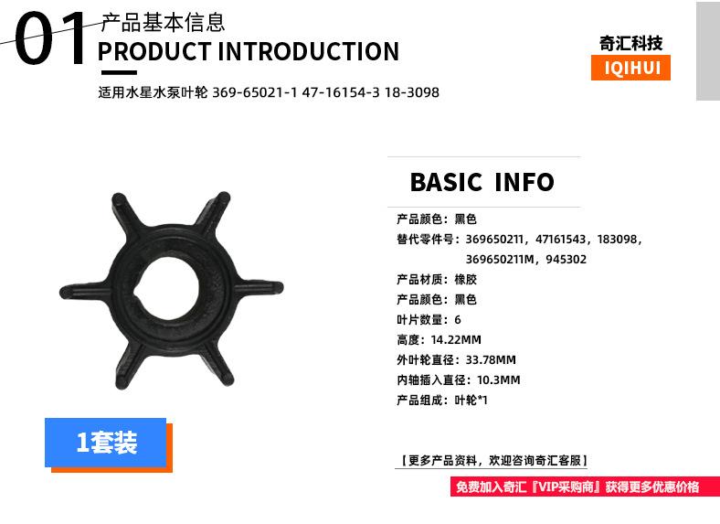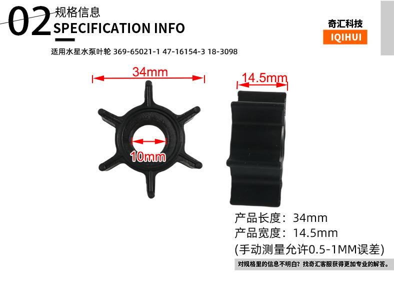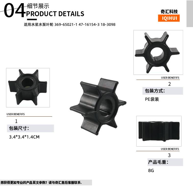 Impulsor de bomba de água quente preta transfronteiriça para Mercury 369-65021-1 47-16154-3 183098