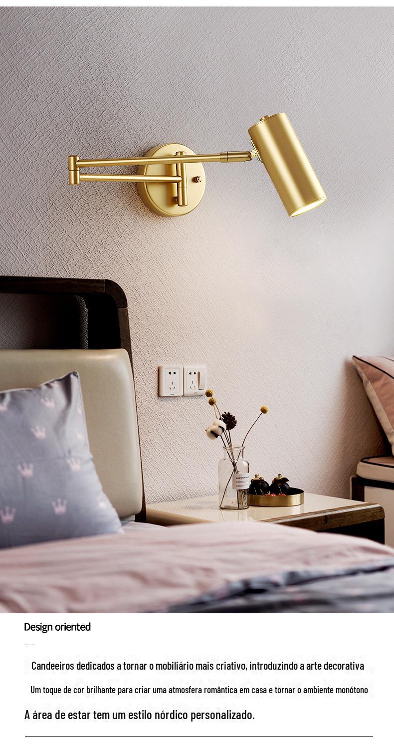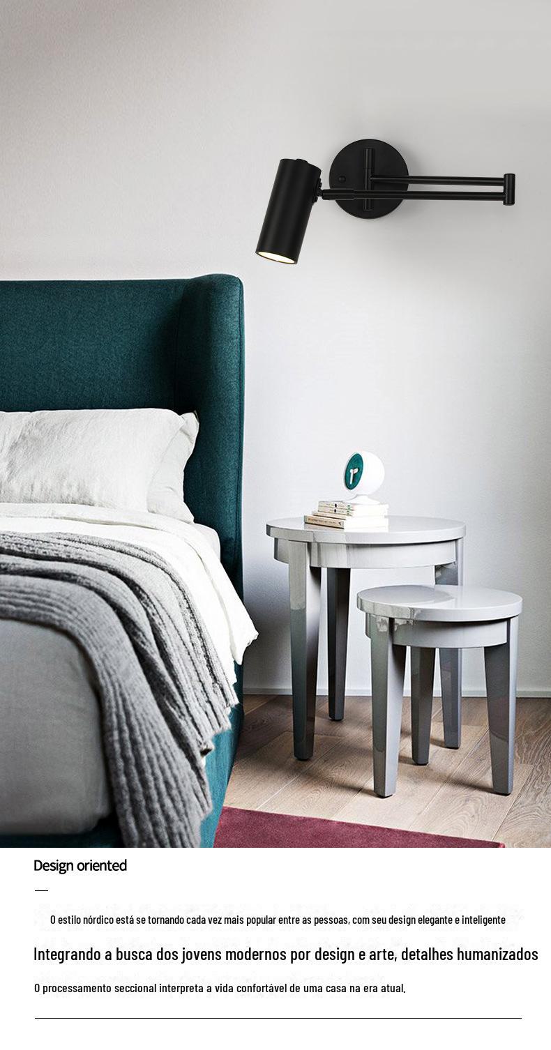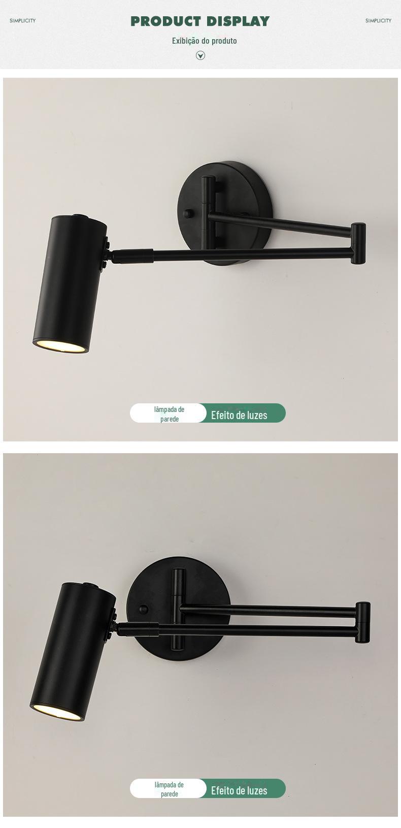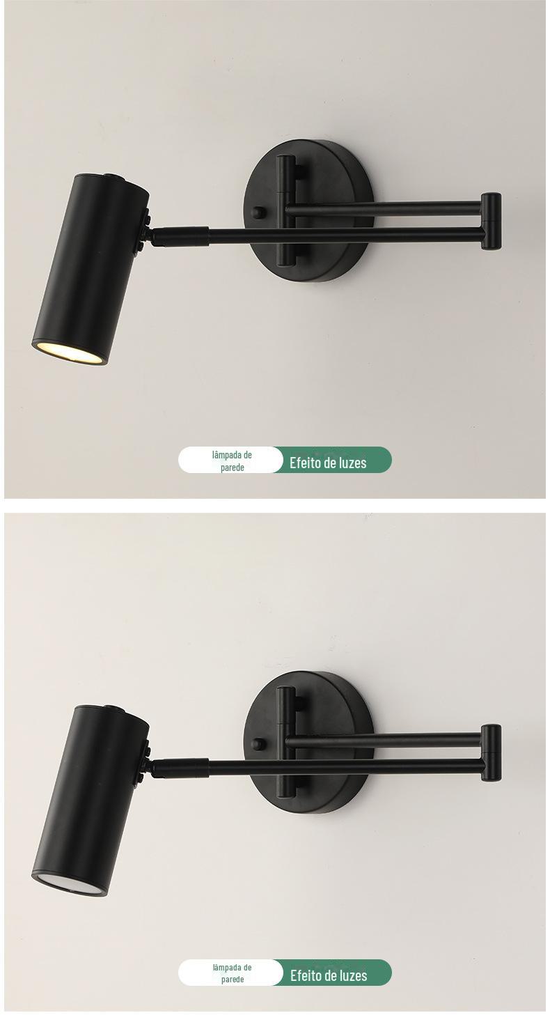Luminária de parede nórdica LED para quarto, leitura, moderna, simples, criativa, para sala de estar, estudo, dobrável, telescópica, longa, braço oscilante