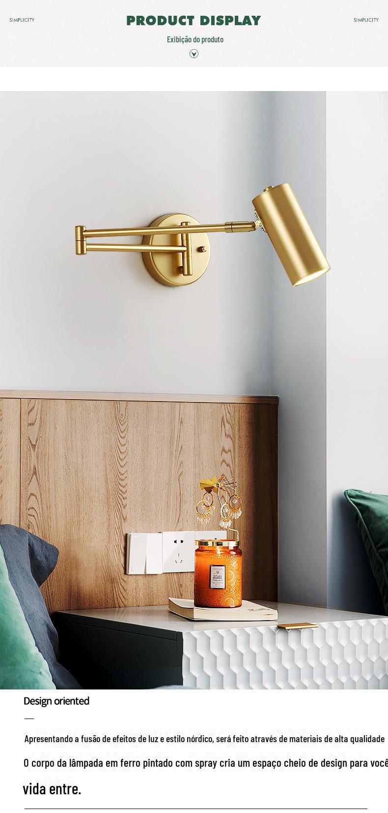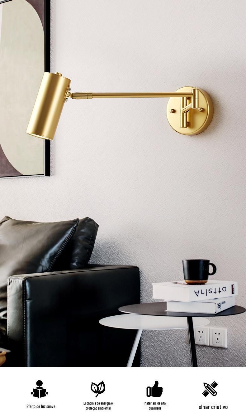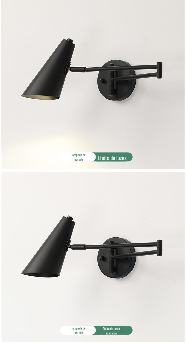 Luminária de parede nórdica LED para quarto, leitura, moderna, simples, criativa, para sala de estar, estudo, dobrável, telescópica, longa, braço oscilante