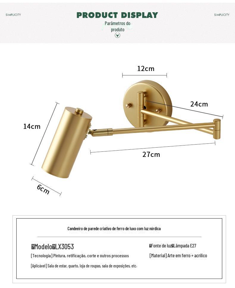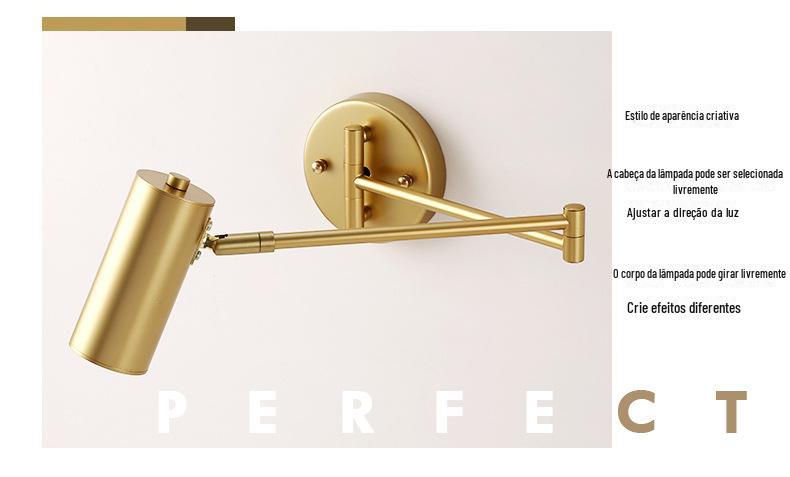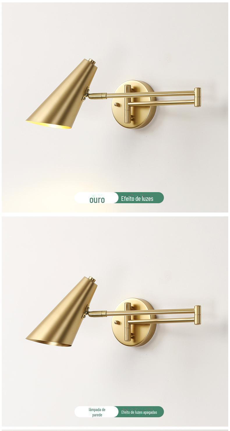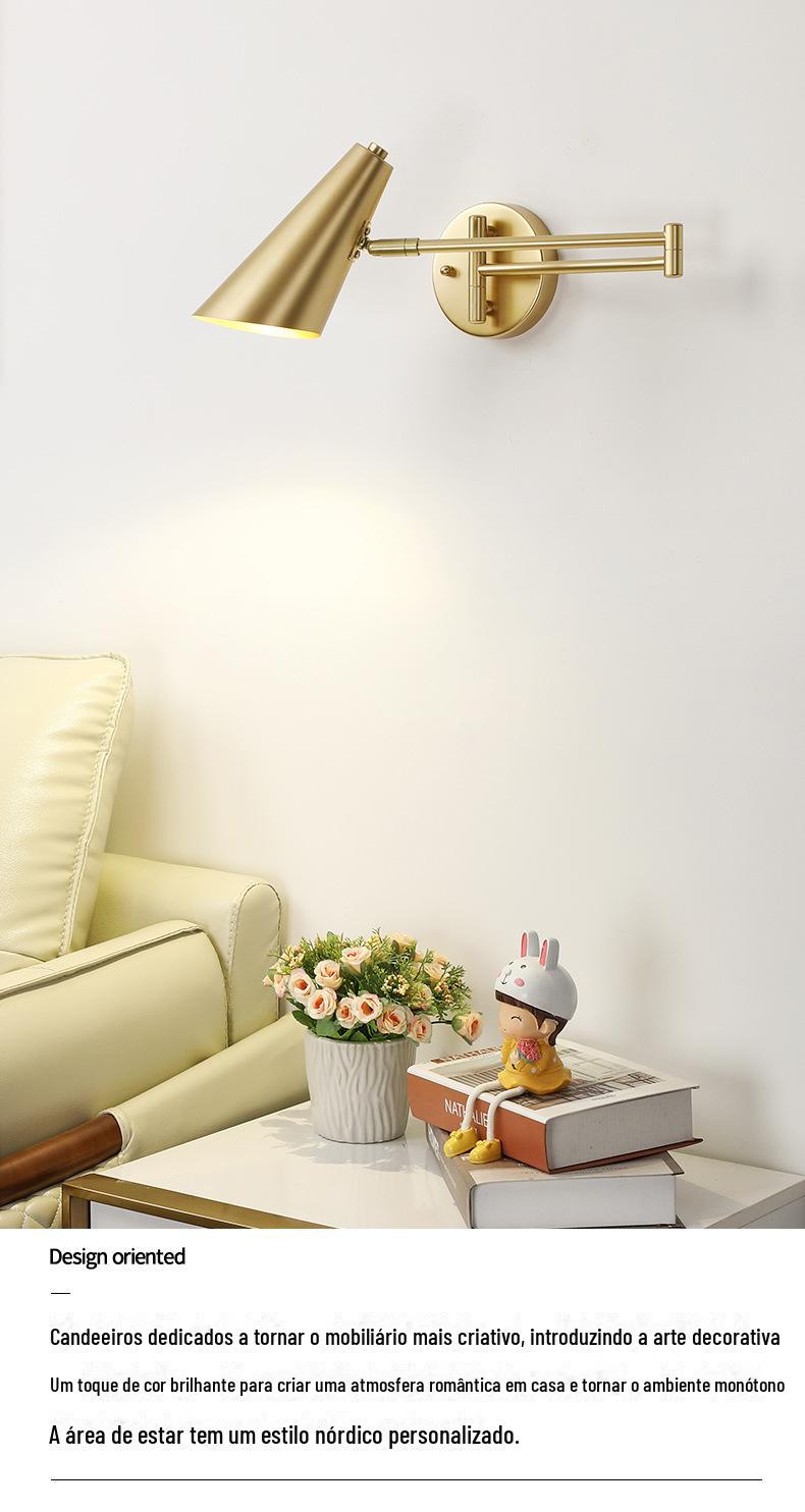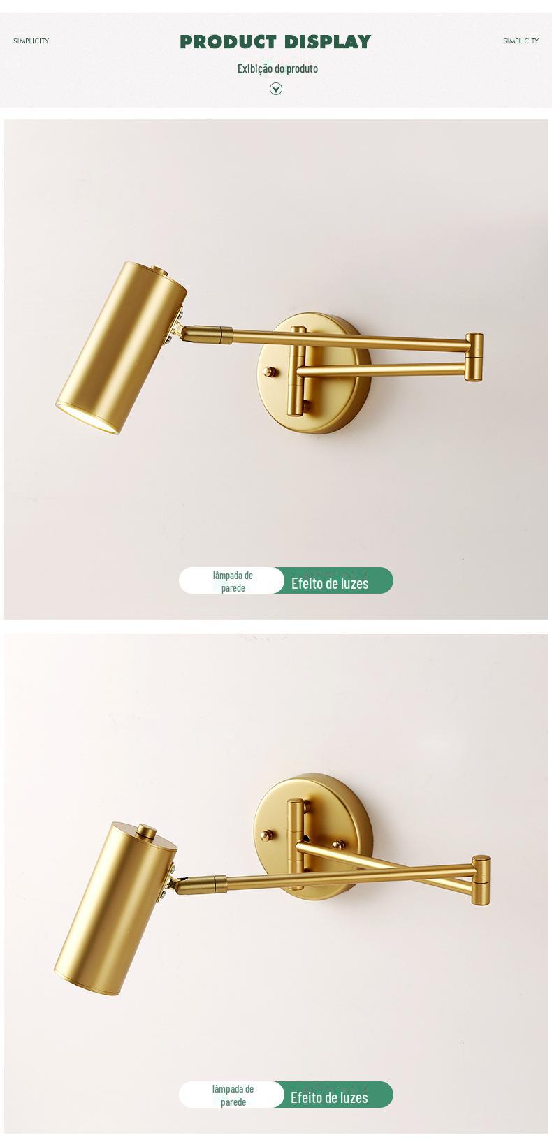 Luminária de parede nórdica LED para quarto, leitura, moderna, simples, criativa, para sala de estar, estudo, dobrável, telescópica, longa, braço oscilante
