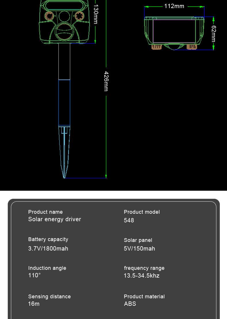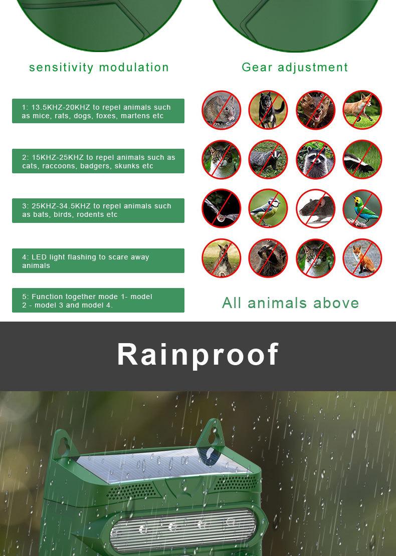 Novo Repelente Solar de Animais Repelente Ultrassônico de Aves para Exterior Repelente Eletrônico de Cães Repelente de Gatos Repelente de Ratos em Estoque