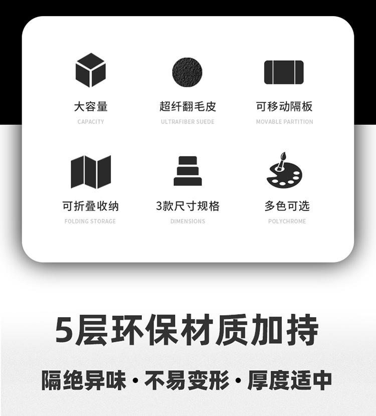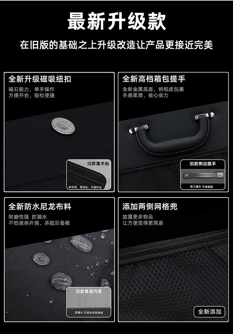 Grande capacidade, dobrável e não ocupa espaço. Pode ser armazenado em compartimentos, à prova d'água e resistente à sujeira