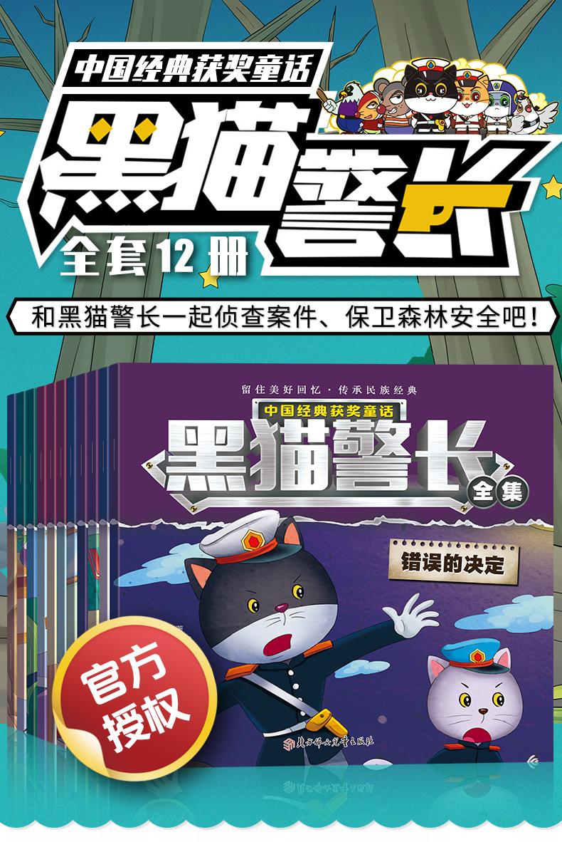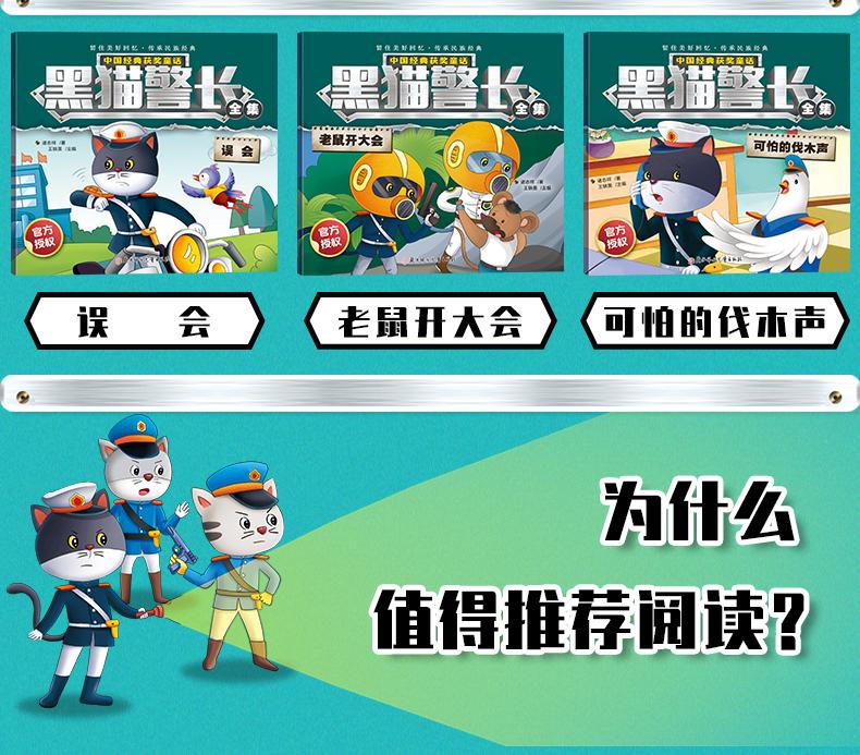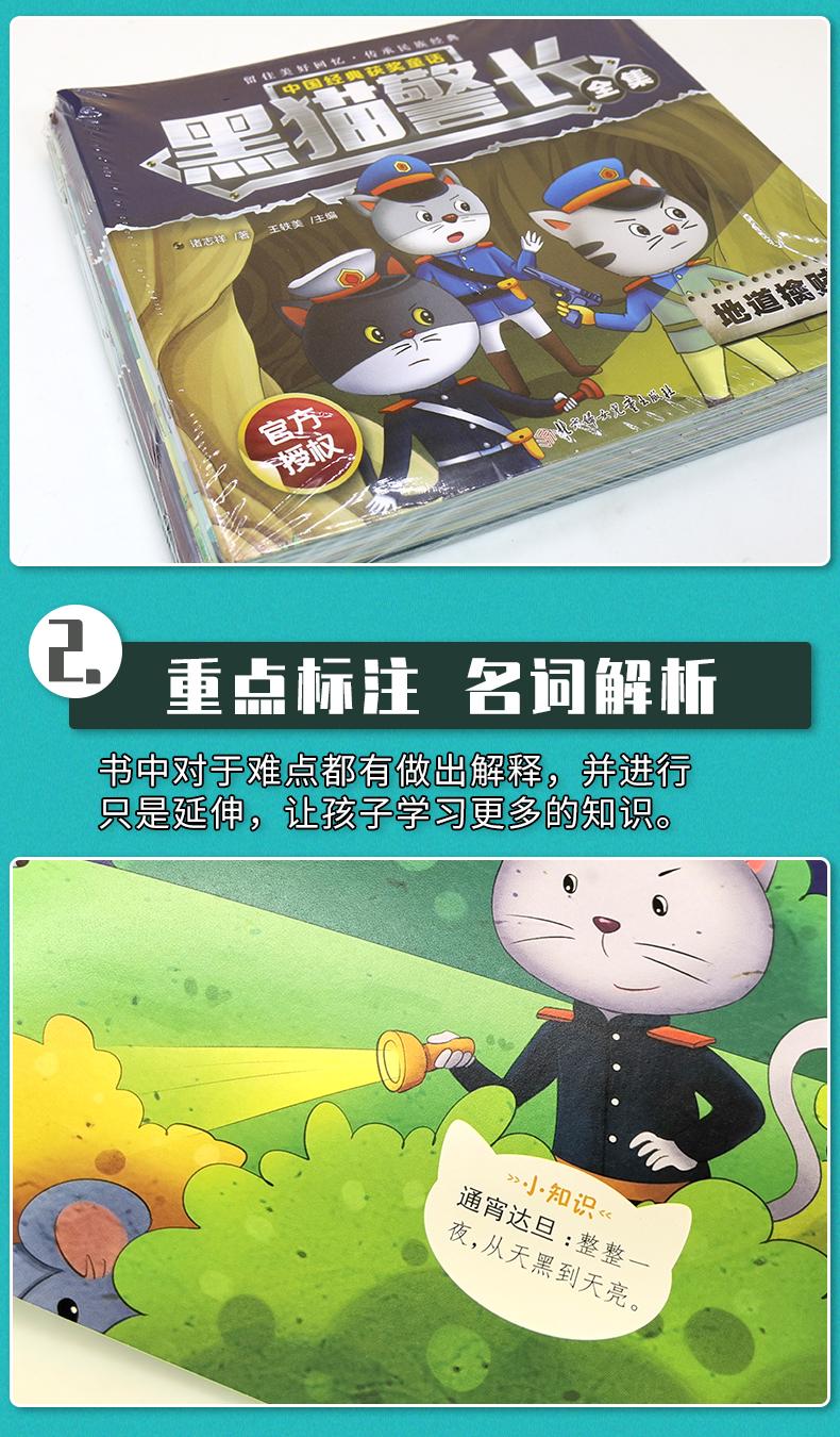 Gato Preto Xerife Livro de Histórias Conjunto Completo de 12 Volumes Gato Preto Xerife Livro Ilustrado Infantil Contos de Fadas Chineses Clássicos Premiados para Crianças