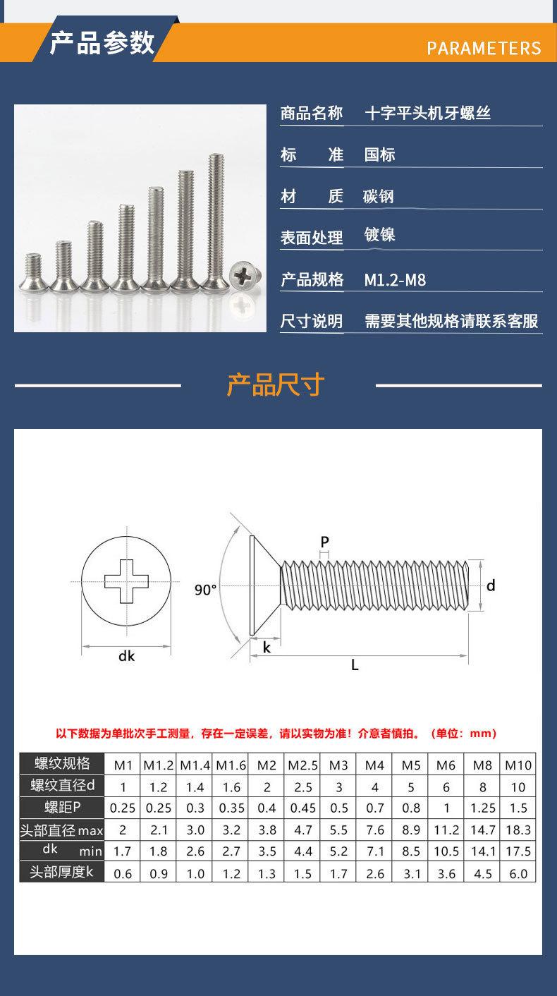 KM aço carbono niquelado sulco cruzado cabeça escareada máquina parafuso de dente parafuso de cabeça chata máquina de fio de máquina de M2M3M4M5M6