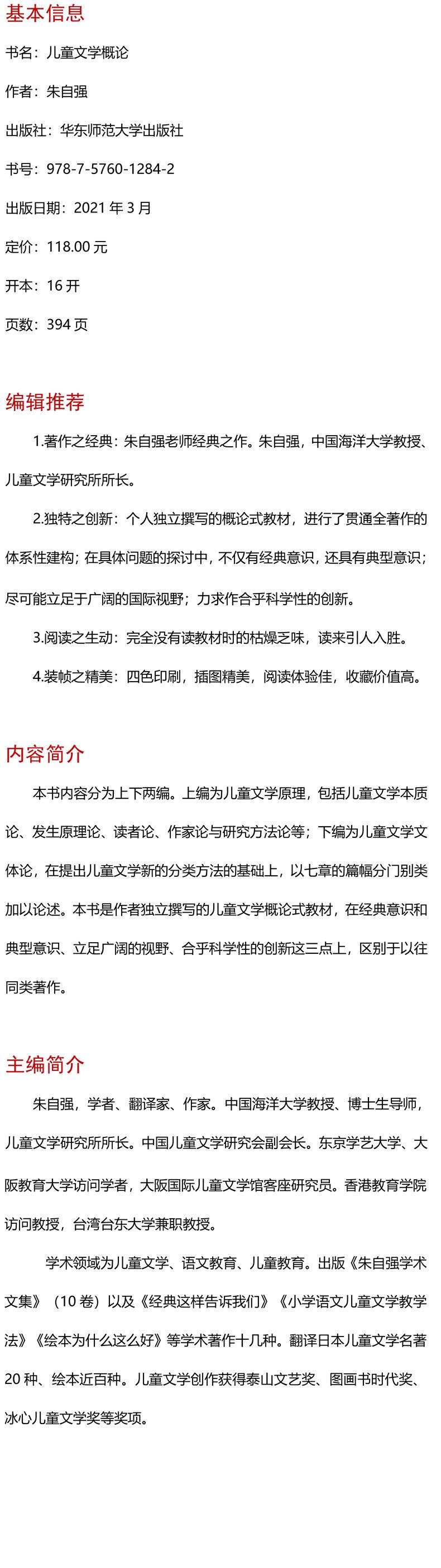 Introduction to Children's Literature Zhu Ziqiang Teaching Methods and Theories East China Normal University Press