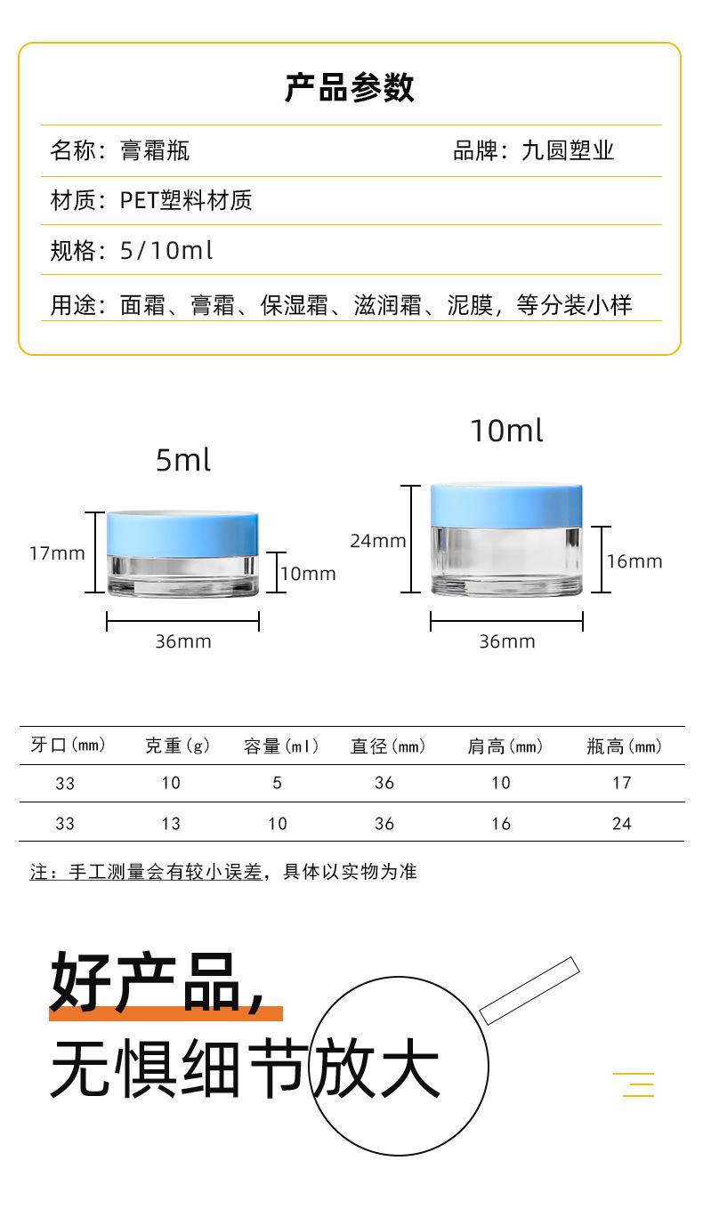 Caixa de amostra de teste para animais de estimação, frasco de 5 ml de creme para o rosto, lata dispensadora de 10 g de embalagem cosmética, frasco dispensador