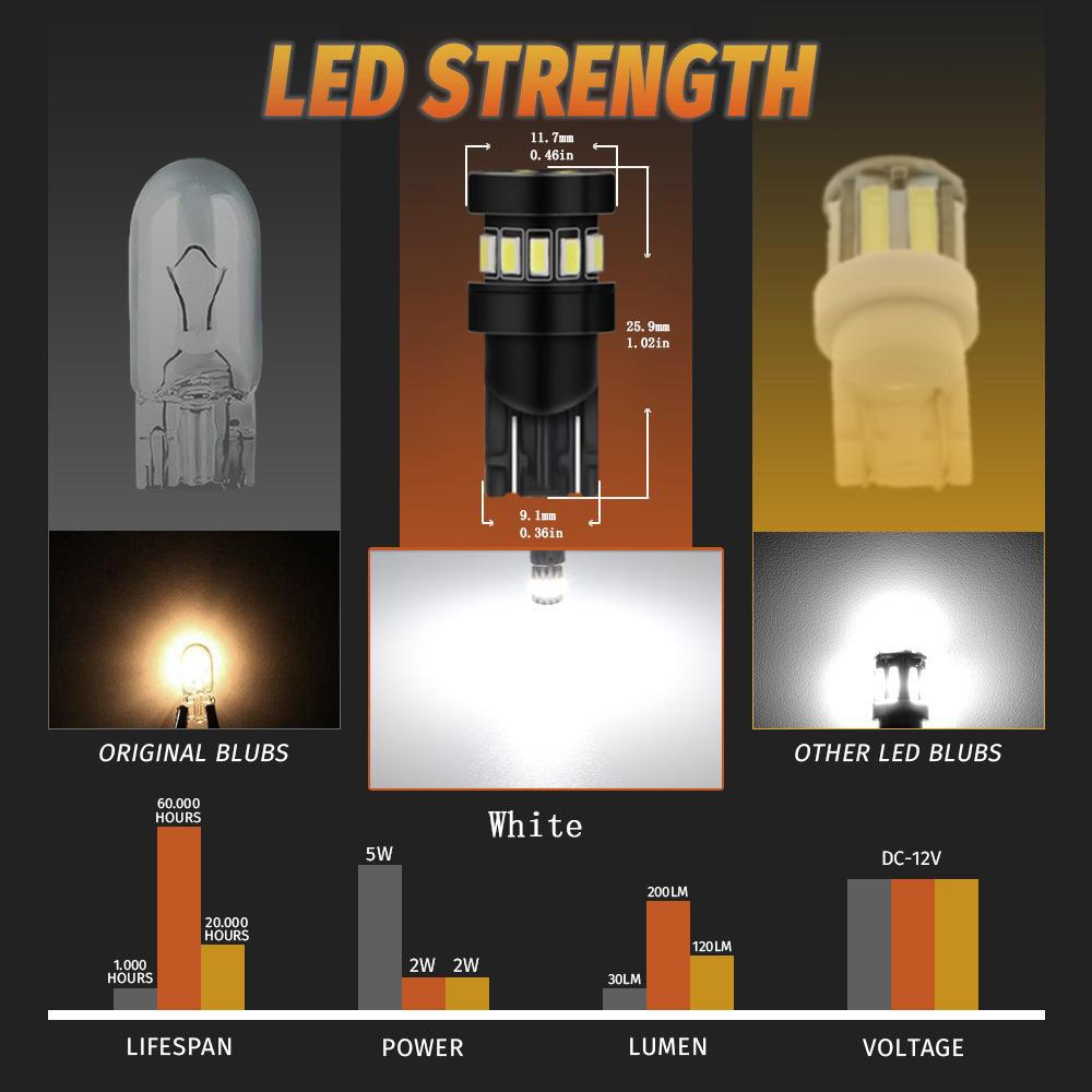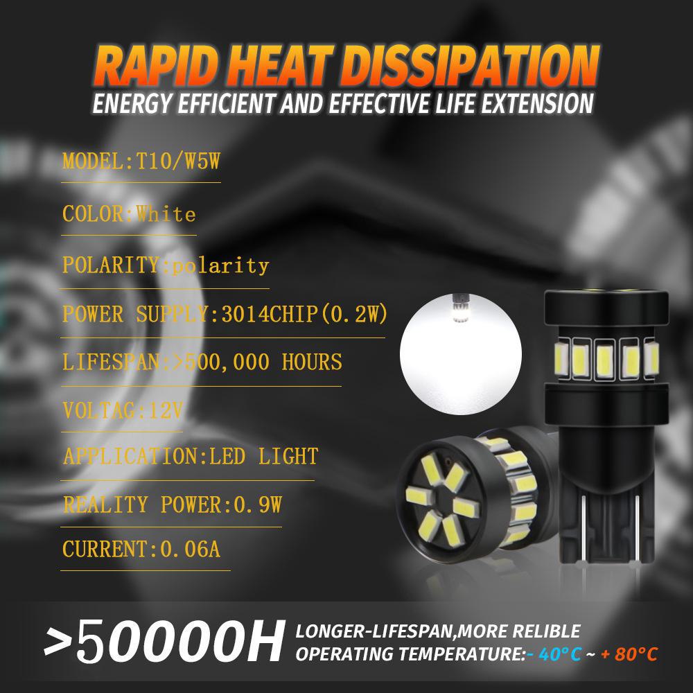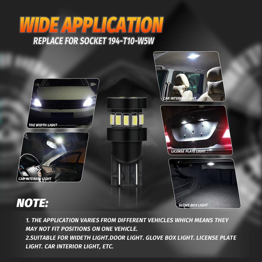 [Uso do produto]: Luzes de largura, luzes de leitura, luzes de placa de licença, luzes de teto, luzes de porta, luzes traseiras, luzes de direção laterais, etc., usando chips de alto brilho 3014, baixo consumo de energia, alto brilho, economia de energia e proteção ambiental!