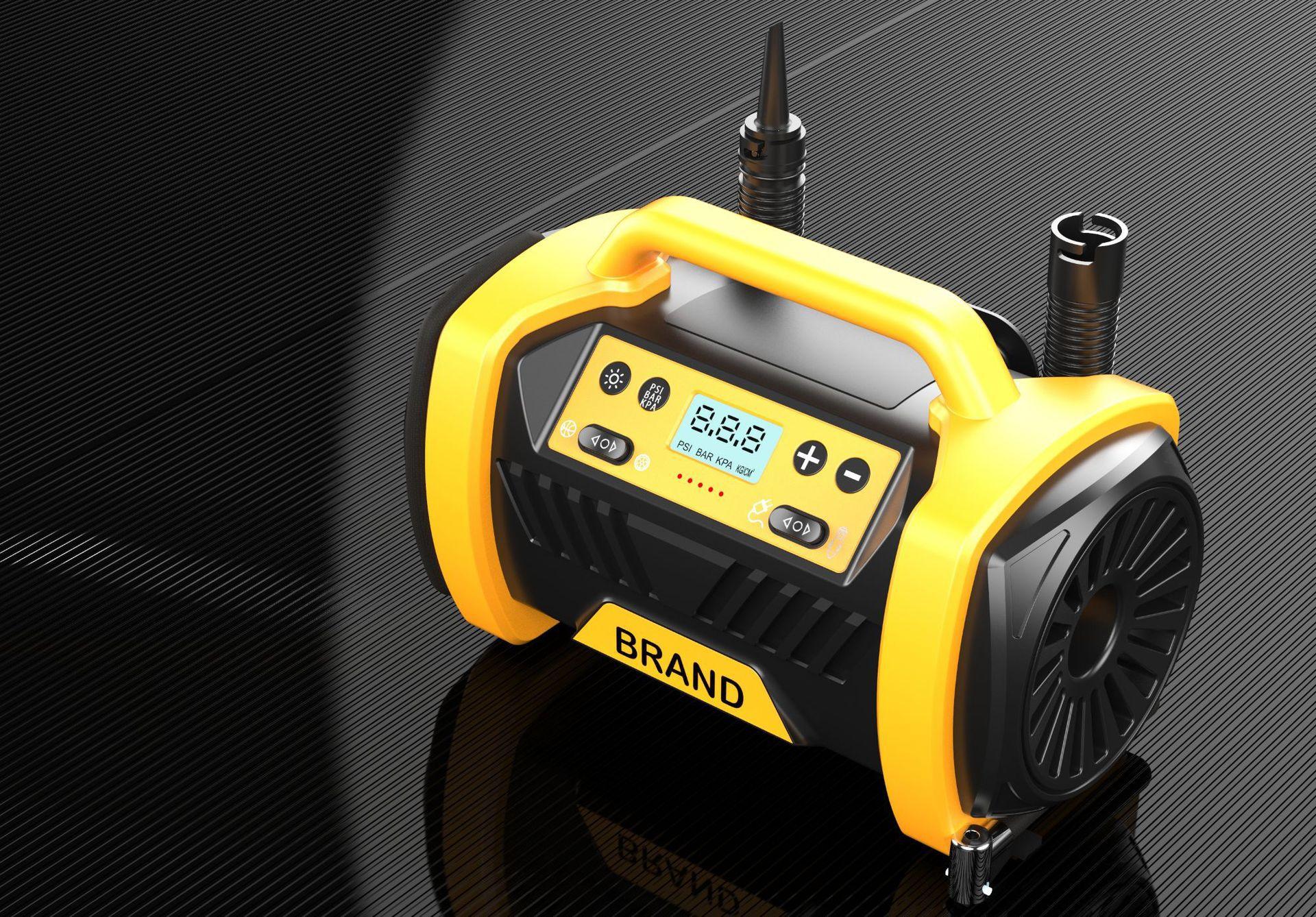 Bomba de Ar para Carro Cilindro Duplo Doméstica 12V Bomba de Ar Elétrica Portátil de Emergência Pneu Carro Bomba de Ar com Visor Digital
