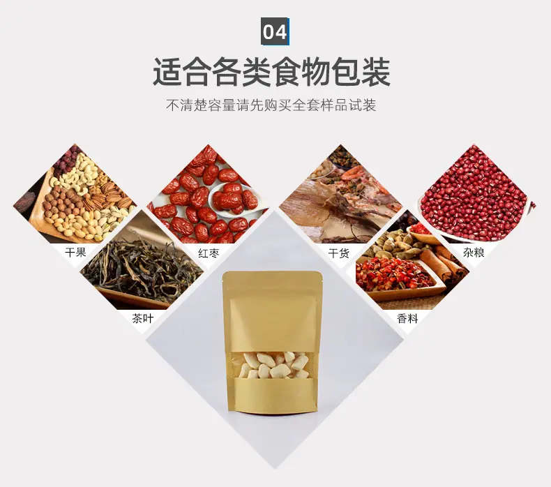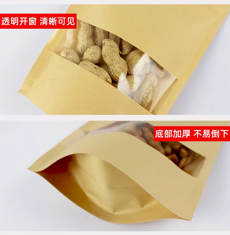 12 * 20 + 4 saco auto-selante de papel Kraft saco de embalagem de frutas secas saco de papel Kraft saco de papel selado janela auto-suficiente em estoque