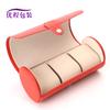 Em estoque atacado Rosa Vermelha 3-bit cilindro caixa de relógio de couro pu caixa de relógio redondo caixa de armazenamento de jóias portátil