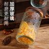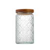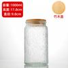 Jarra de armazenamento selada de vidro doméstico Jarra de armazenamento de tampa de bambu de grão Jarra de vidro de chá em relevo transparente