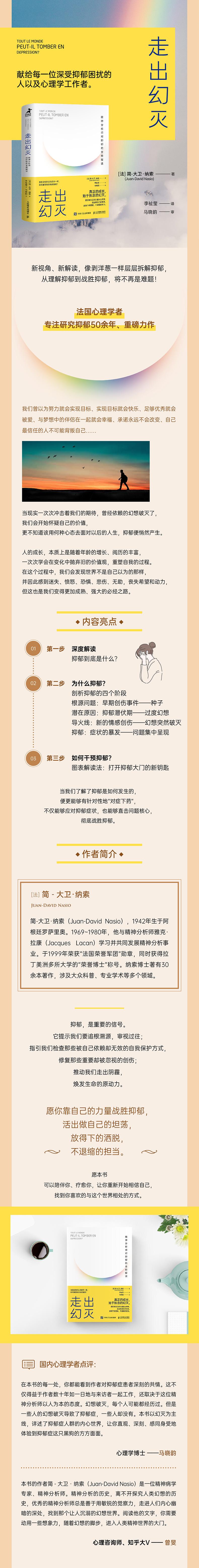1. A depressão não é terrível. A chave para superar a depressão é entender por que a depressão ocorre. 2. O autor é um psicólogo francês que se concentra na pesquisa sobre depressão há mais de 50 anos. 3. Este livro analisa o processo da depressão em detalhes, extrai 4 etapas da ocorrência e do desenvolvimento da depressão e fornece uma análise detalhada com base em casos, fornecendo-nos um mapa psicológico para entender e superar a depressão. 4. O psicólogo Ma Xiaoyun e Zhihu big V Zeng Min recomendam este livro em conjunto! 5. Seja você uma pessoa que sofre de depressão ou um psicólogo, você pode ler este livro.