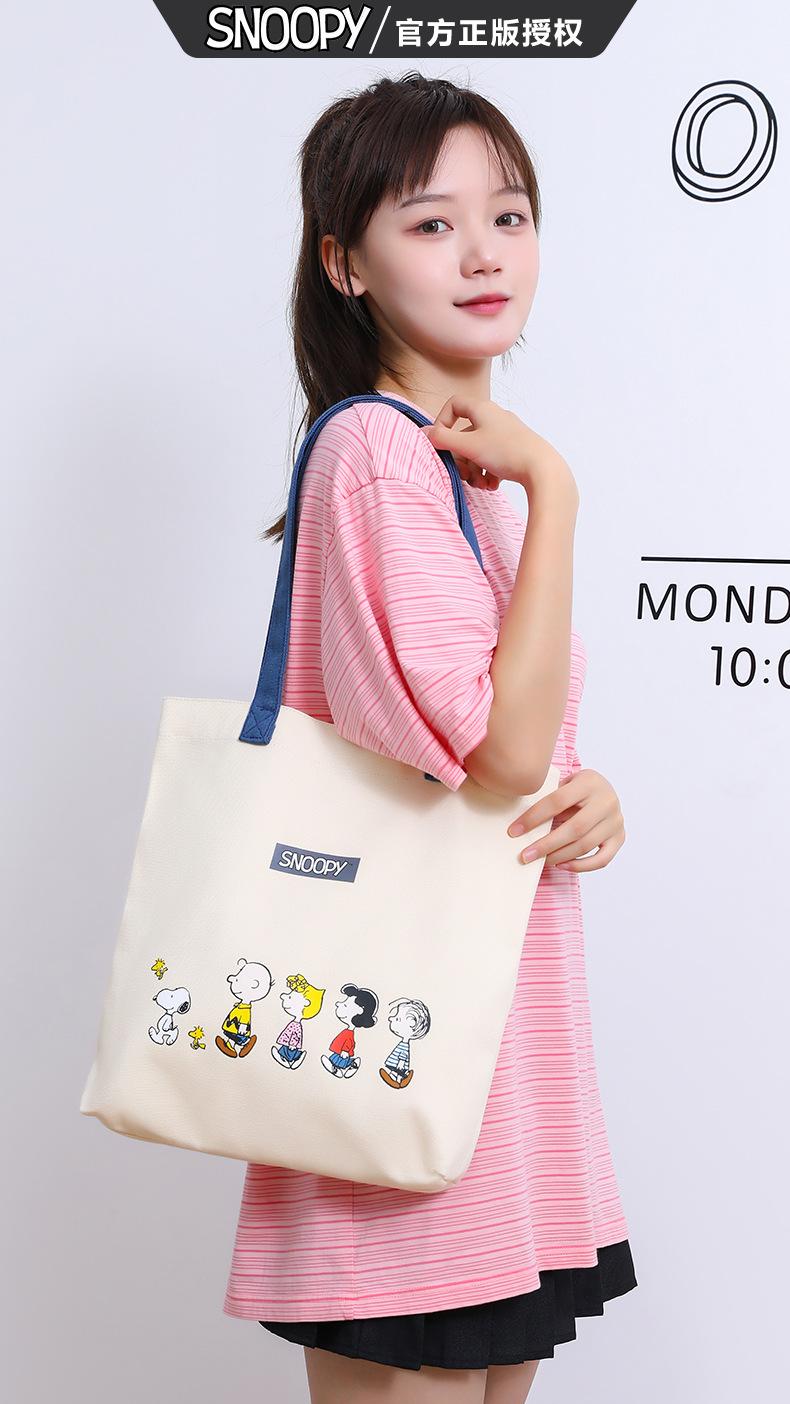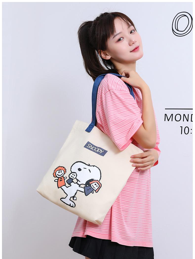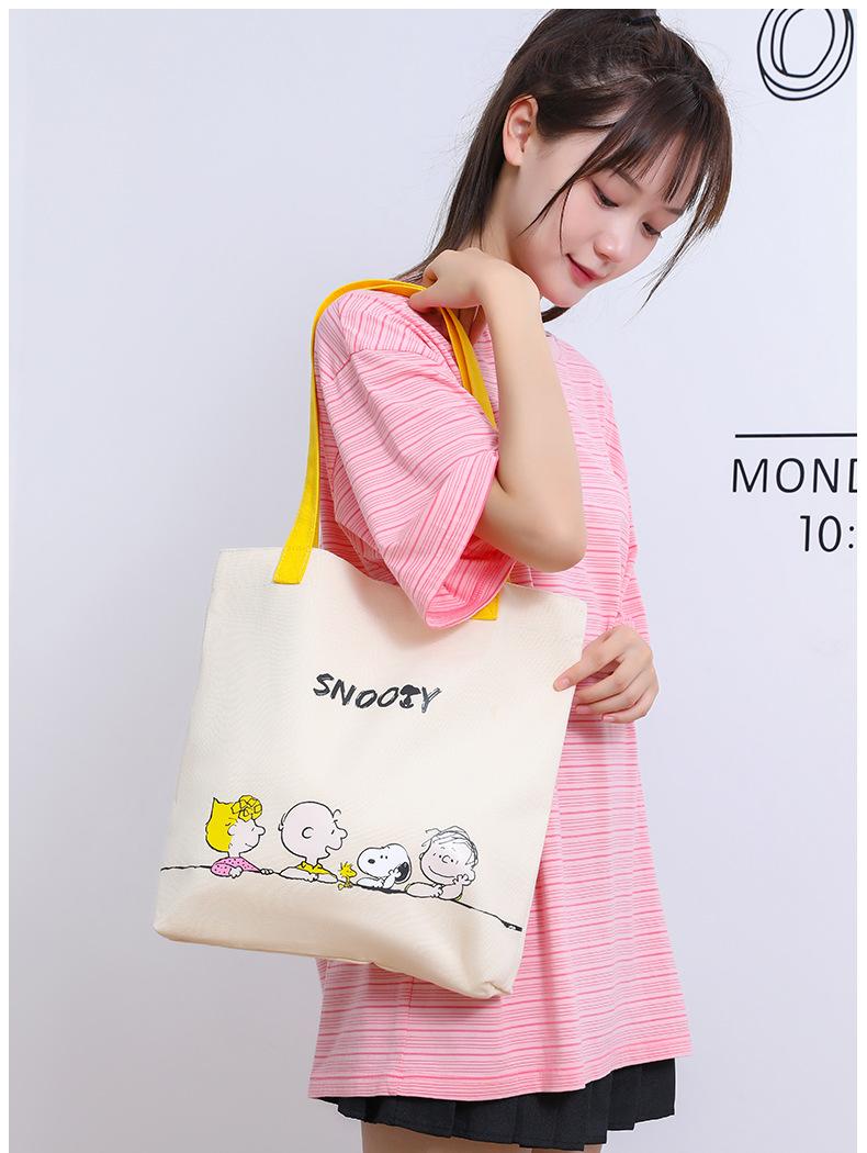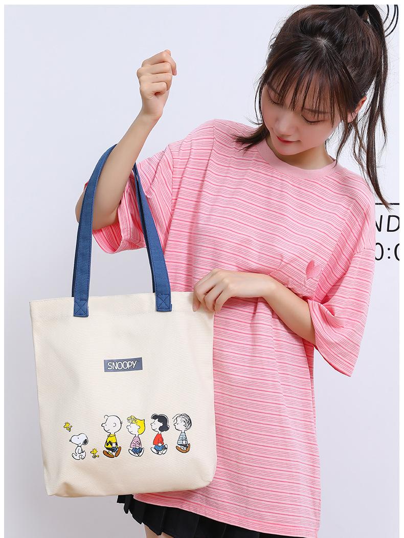 Bolsa de Ombro Snoopy Cartoon Grande Capacidade Bolsa de Mão Casual Feminina Sacola Tote para Trabalho em Lona