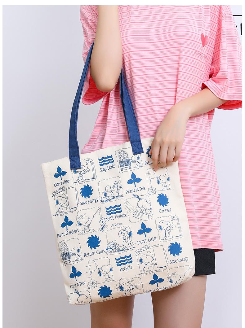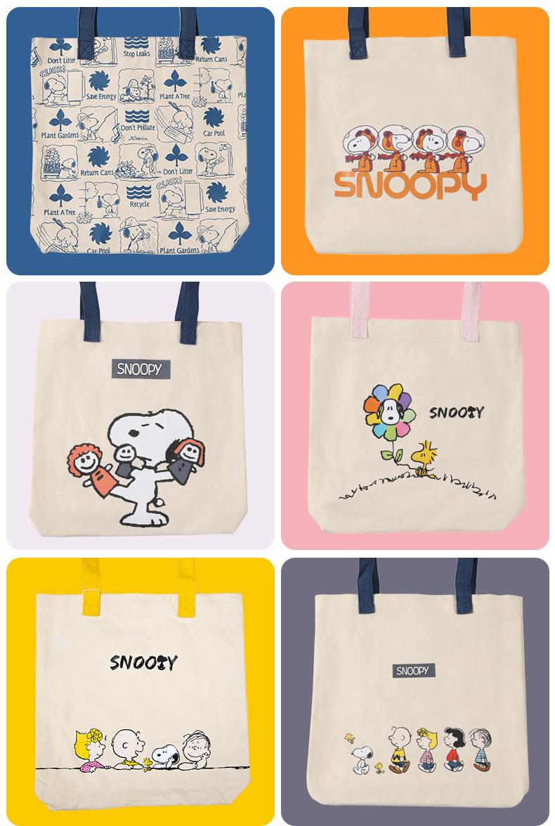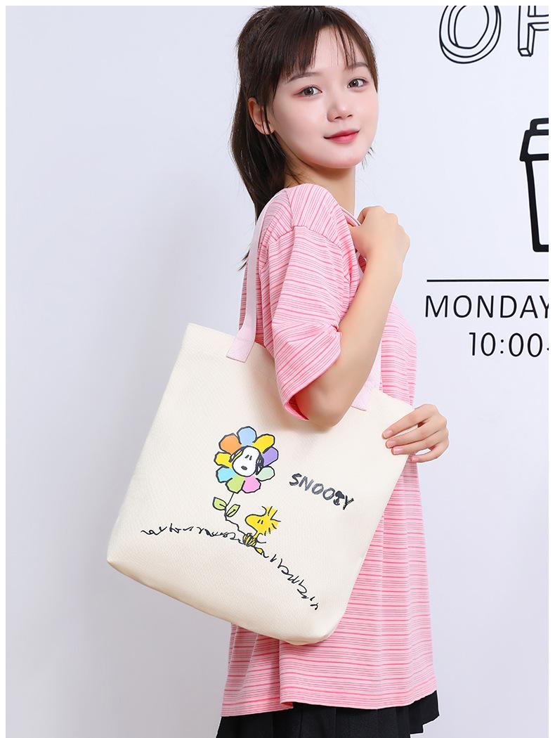 Bolsa de Ombro Snoopy Cartoon Grande Capacidade Bolsa de Mão Casual Feminina Sacola Tote para Trabalho em Lona