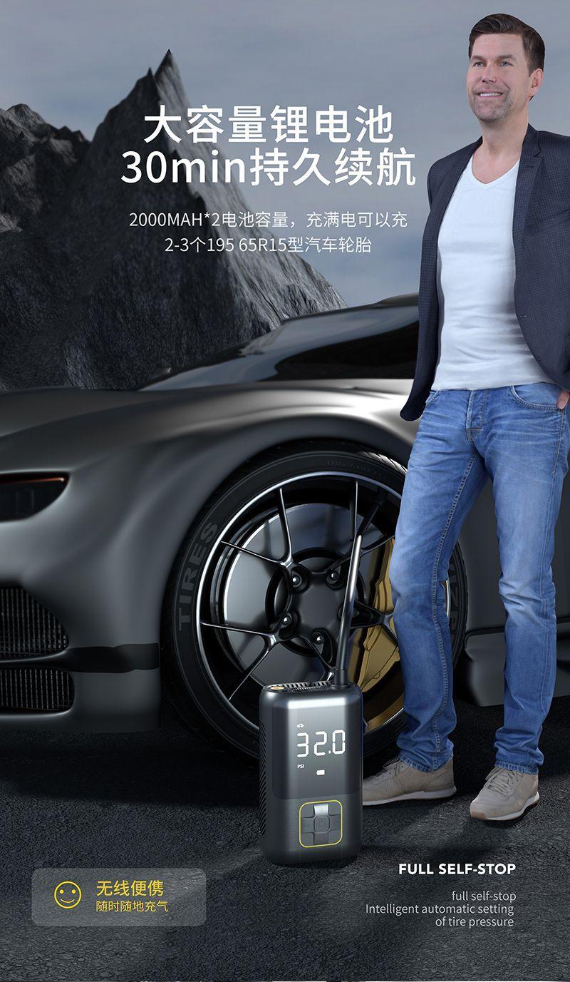 Bomba de Ar Sem Fio para Carro Bomba Elétrica Portátil para Carro Adequada para Inflador de Pneus de Carro Xiaomi