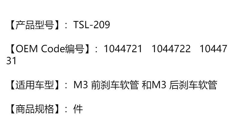 Model 3 front brake hose and M3 rear brake hose (front left/front right/rear)