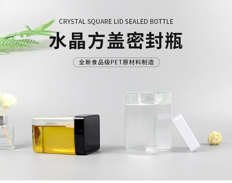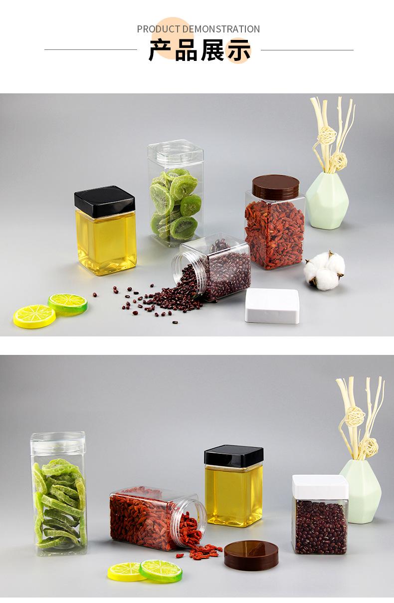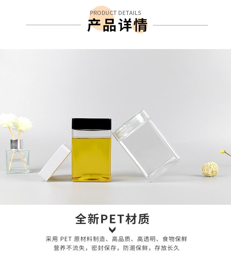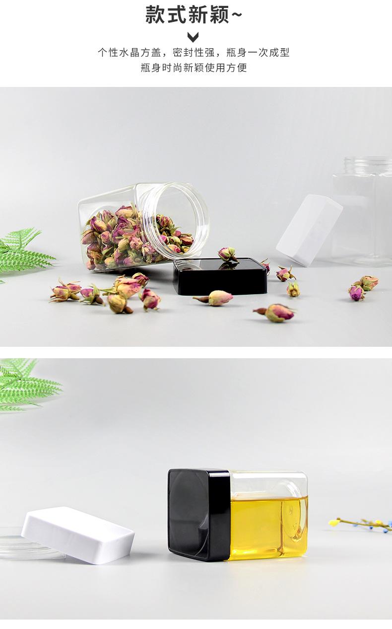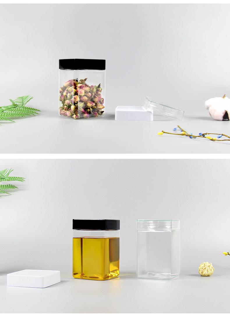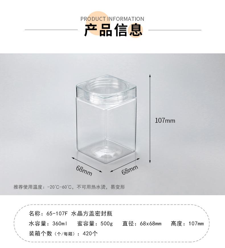 Compre Garrafa de Plástico para Mel, Embalagem de 0,5kg, Tampa Quadrada Cristal, Pote Transparente de Grau Alimentício para Chá de Flores e Produtos Secos, Boca Larga, Pote Selado de 500g no atacado no Joom.pro