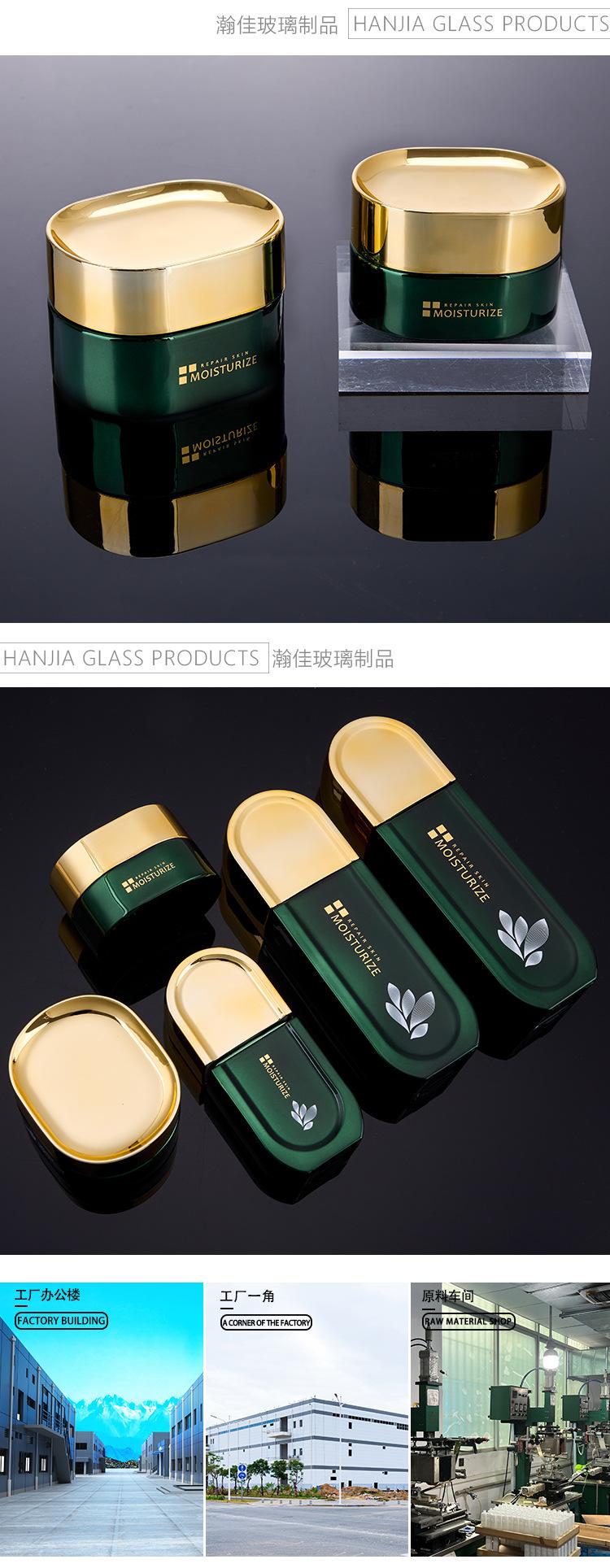 30g cream bottle [naked bottle + lid]; electroplated dark green; glass