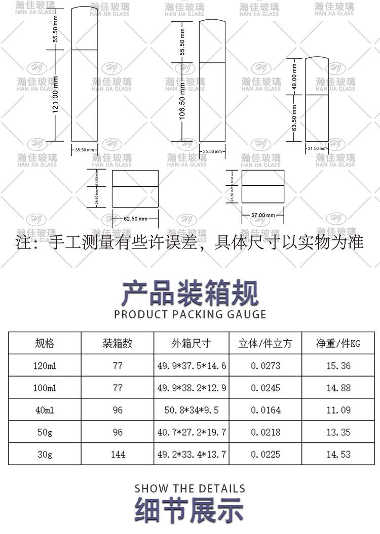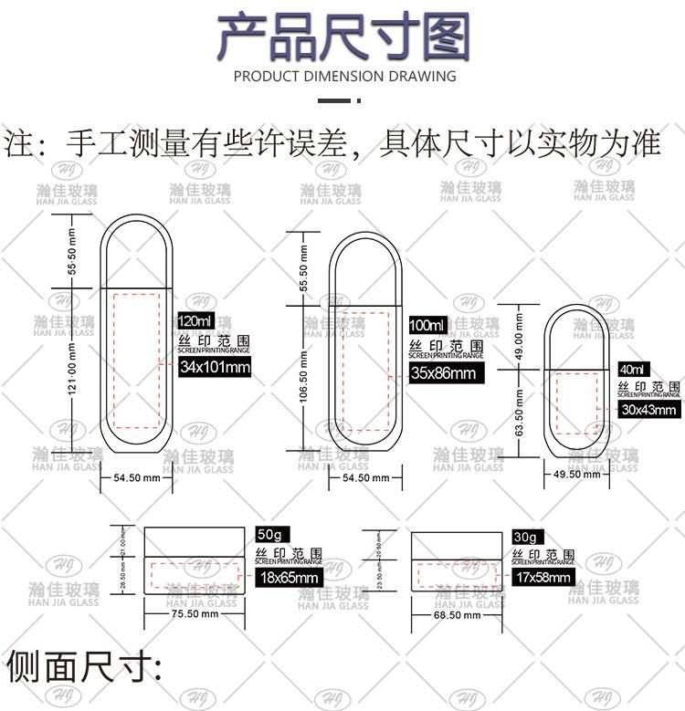 100ml lotion bottle [naked bottle + cap], 30g cream bottle [naked bottle + lid], 50g cream bottle [naked bottl...
