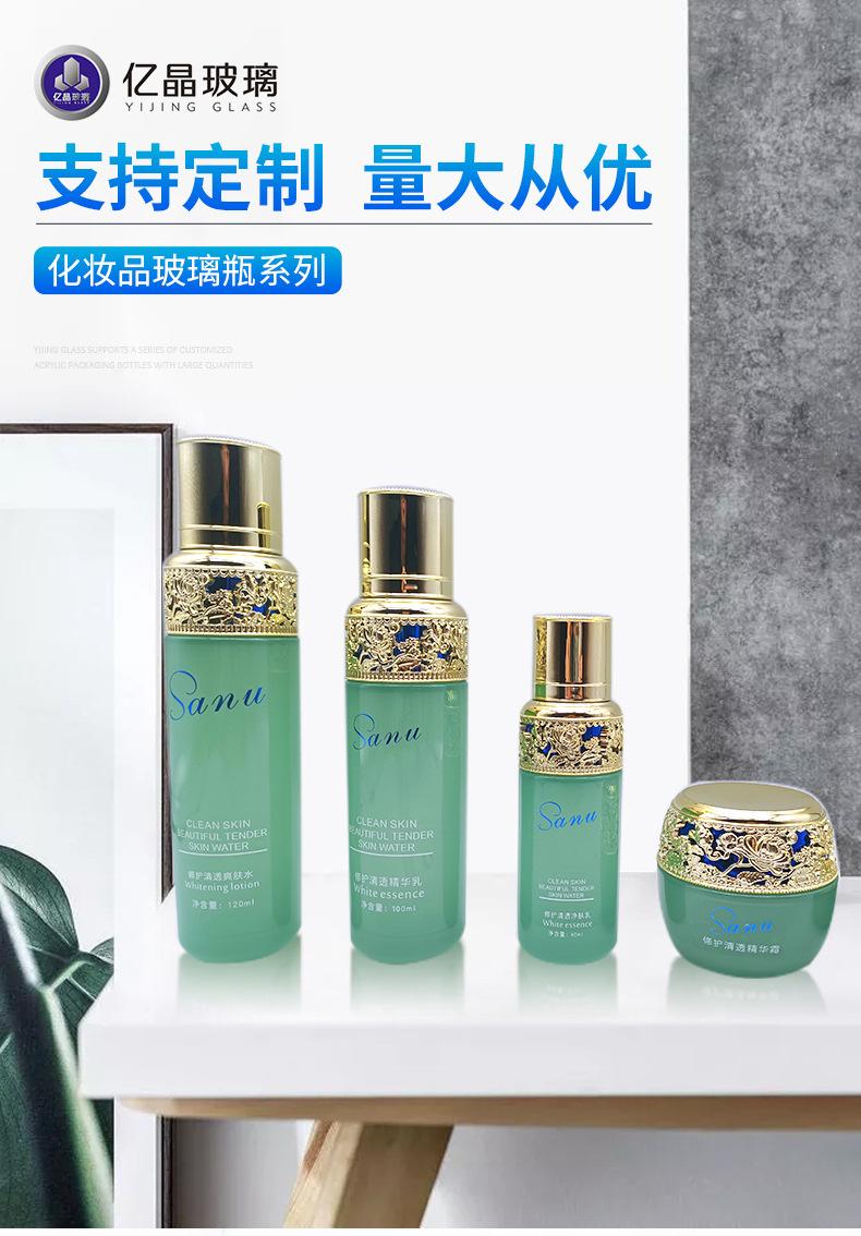 Fábrica de atacado de vidro emulsão frasco creme conjunto frasco material de embalagem de cosméticos personalização de frasco de cuidados com a pele