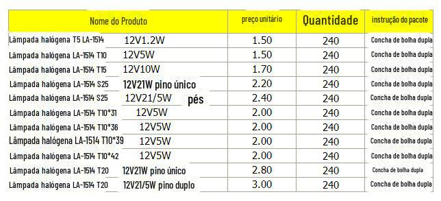Lâmpada halógena LA-1514 T15 W2.1*9.5d 12V10W