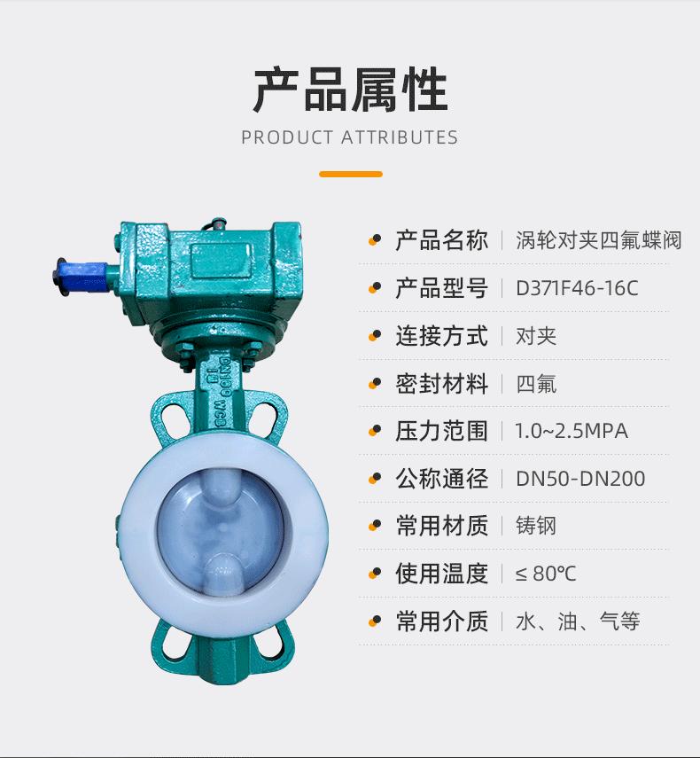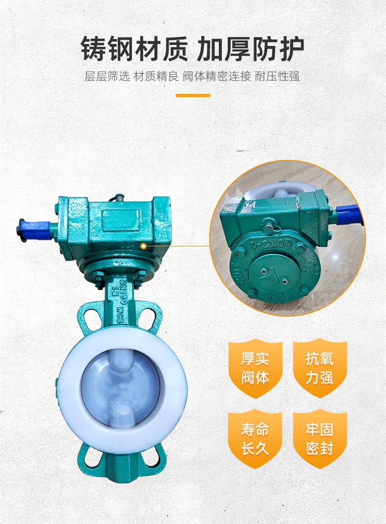 Válvula de borboleta manual da bolacha PTFE da turbina do aço de molde D371F46-16C revestiu inteiramente a válvula de borboleta de PTFE válvula de borboleta resistente do ácido e do alcaloide