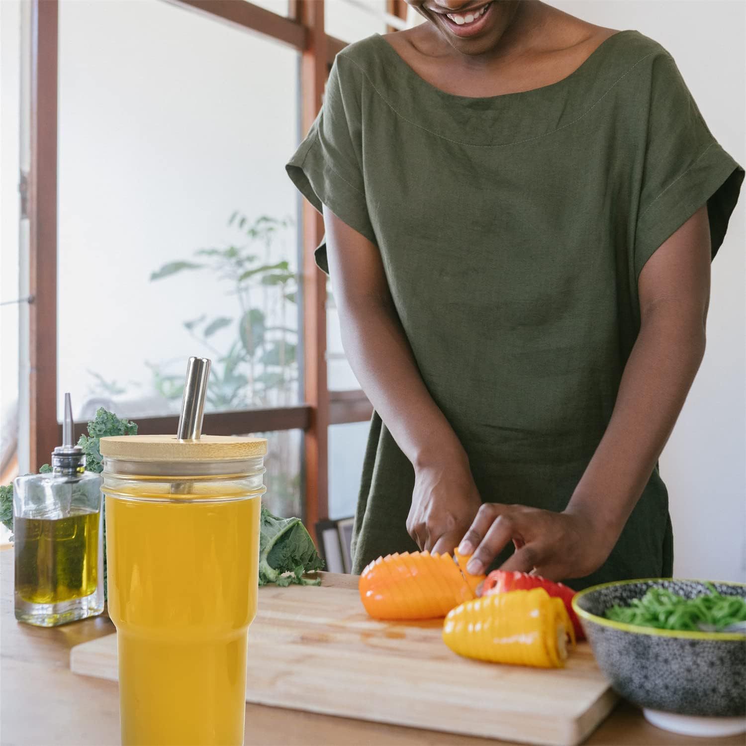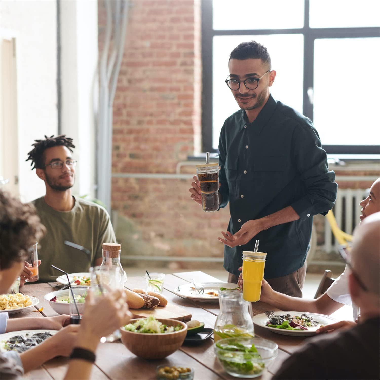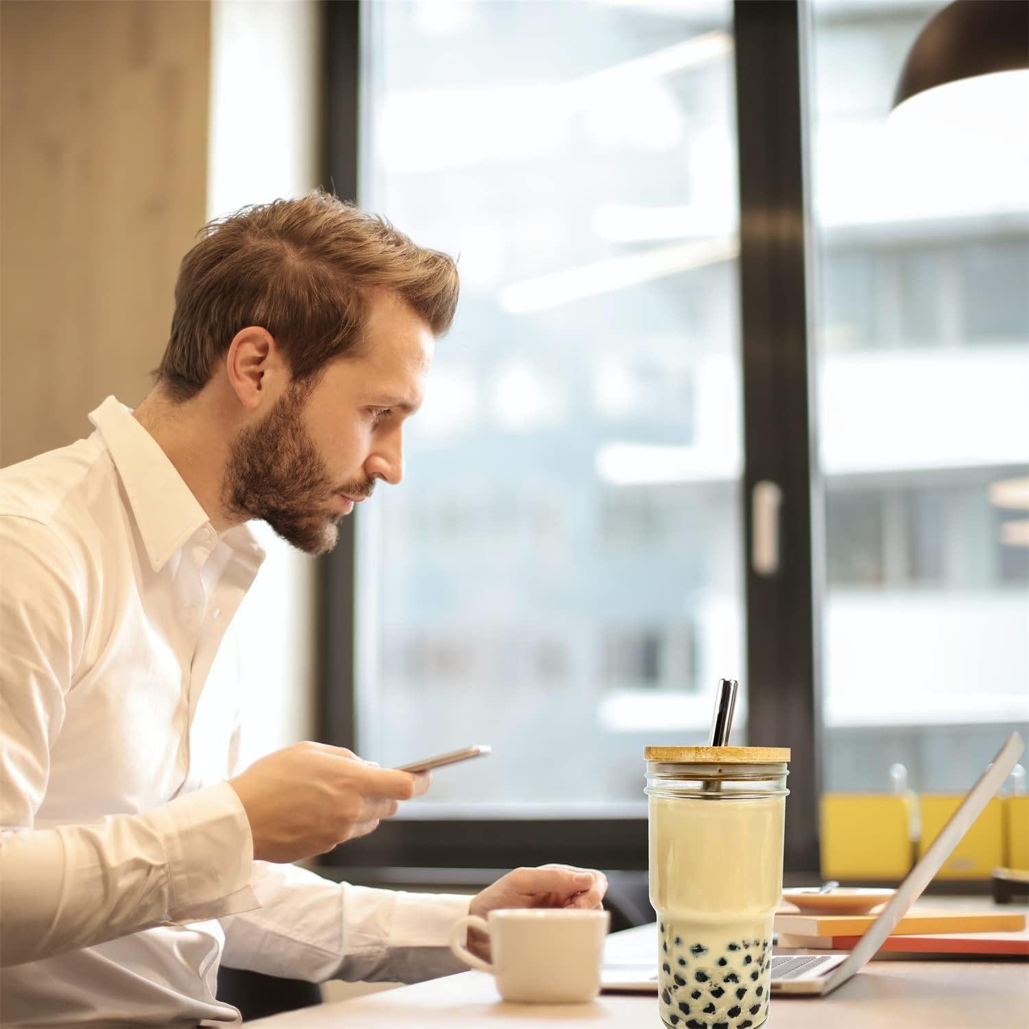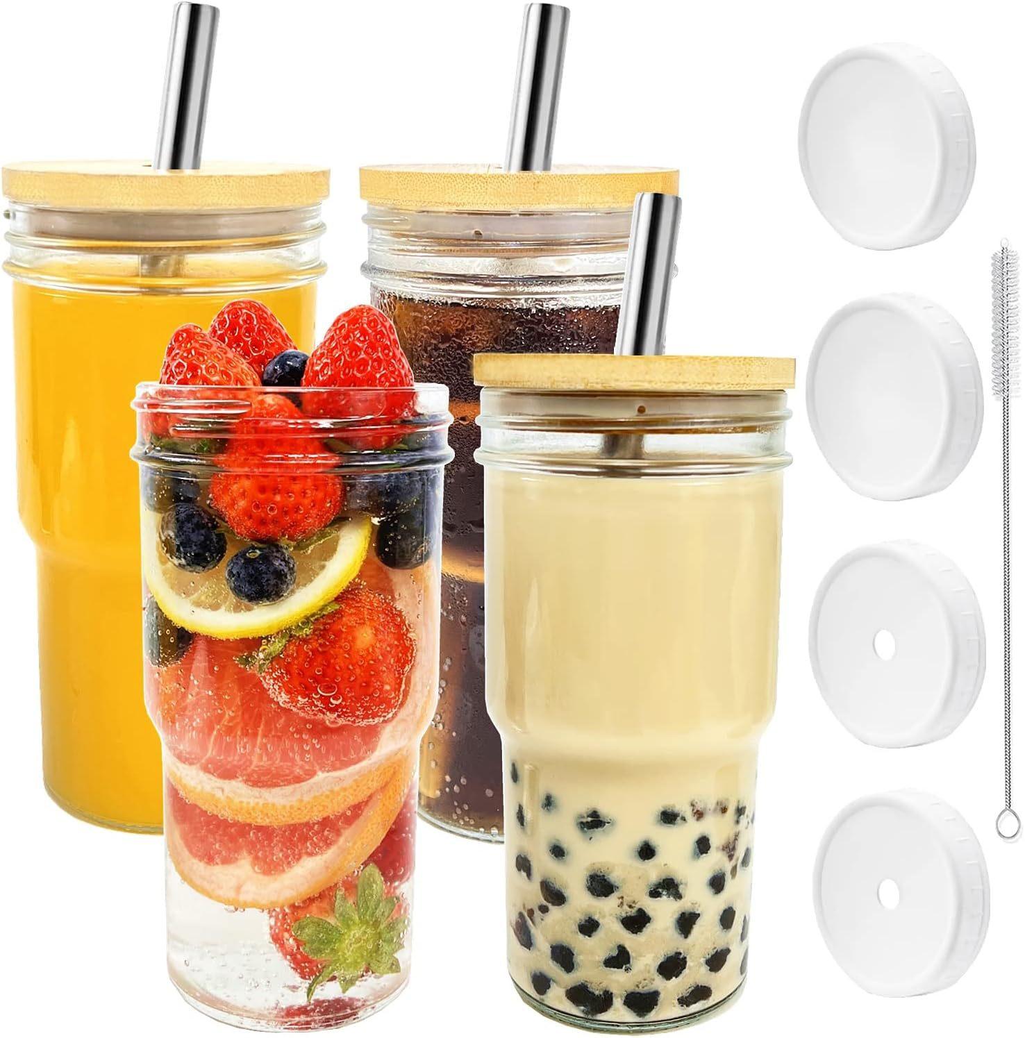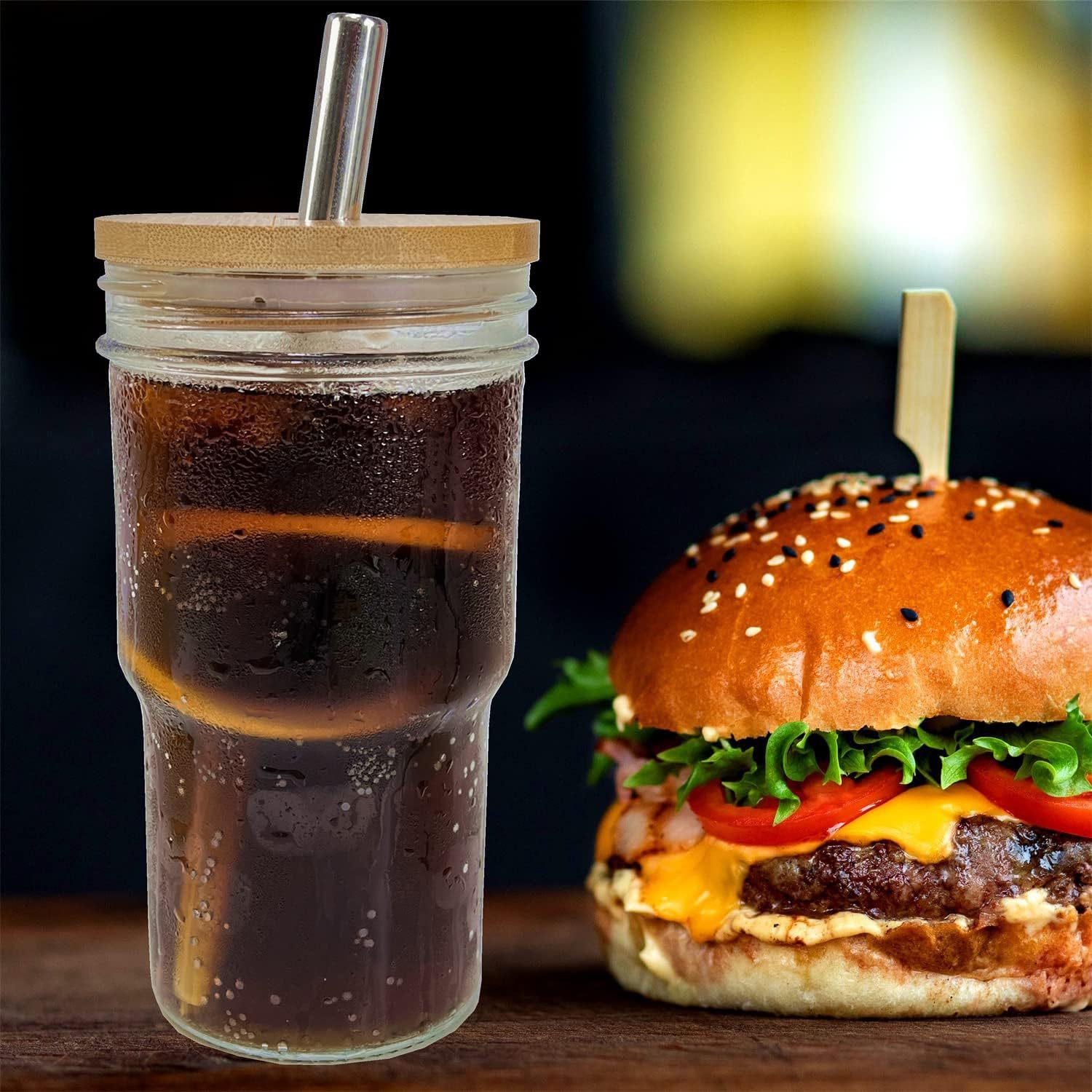 Amazon Comércio Exterior 24oz bambu Mason vidro palha tampa de bambu copo para bebida gelada copo de cerveja copo para bebida copo de suco