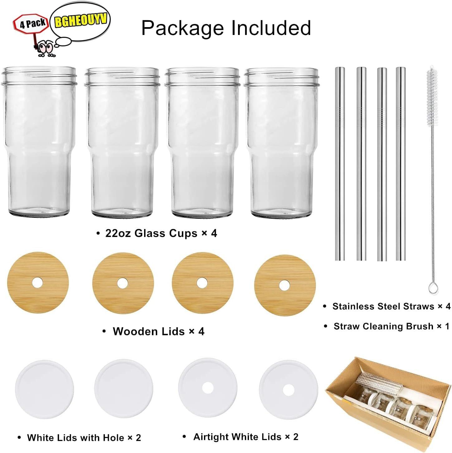 22oz 4 bottles + bamboo cover + straw brush + straw + plastic cover + Pearl cotton Kraft paper box packaging