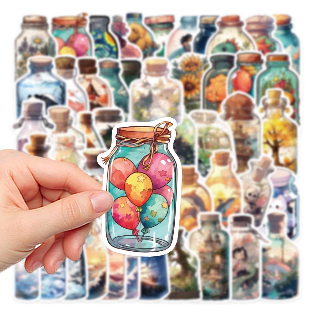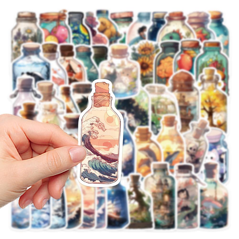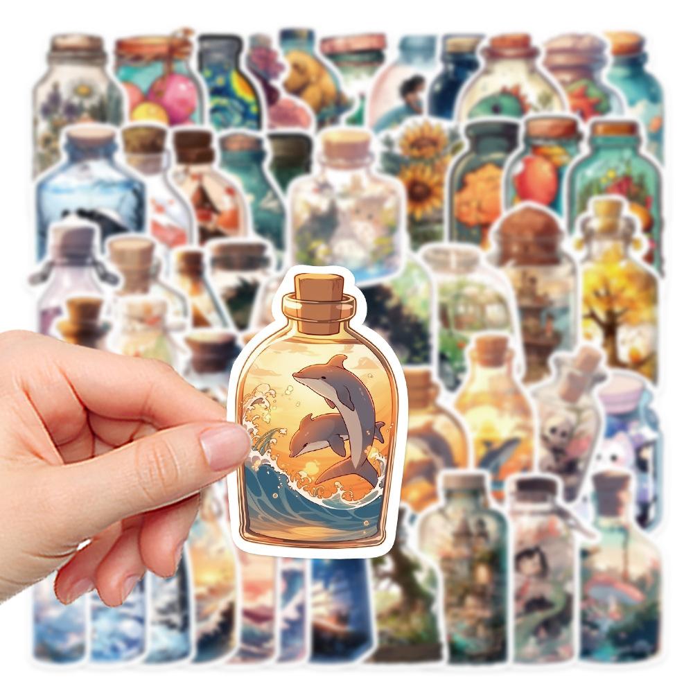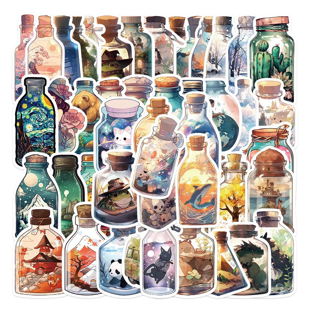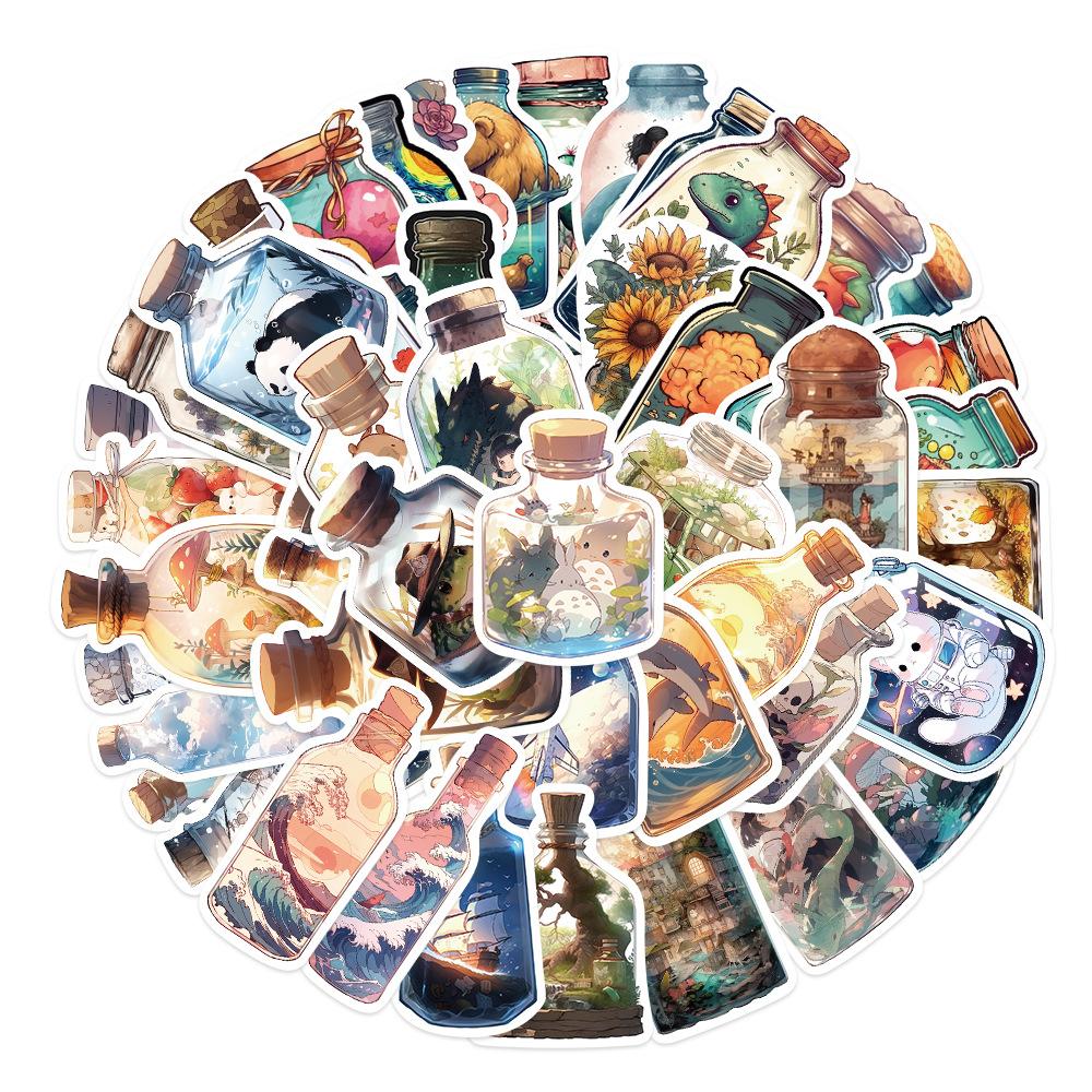 Garrafa de 50 peças do meio e do grande mundo adesivos bagagem laptop notebook material telefone móvel shell adesivos decorativos
