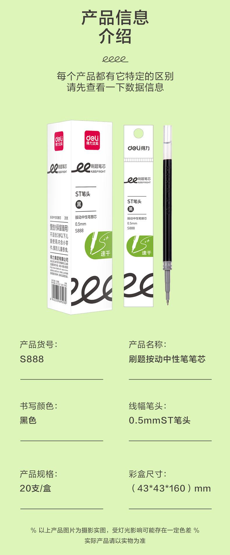 Refil de Imprensa de Secagem Rápida Deli S888 0.5MMst refil de caneta de assinatura de caneta de estudante