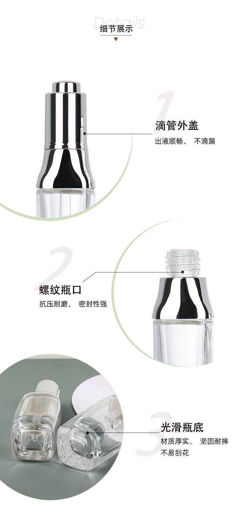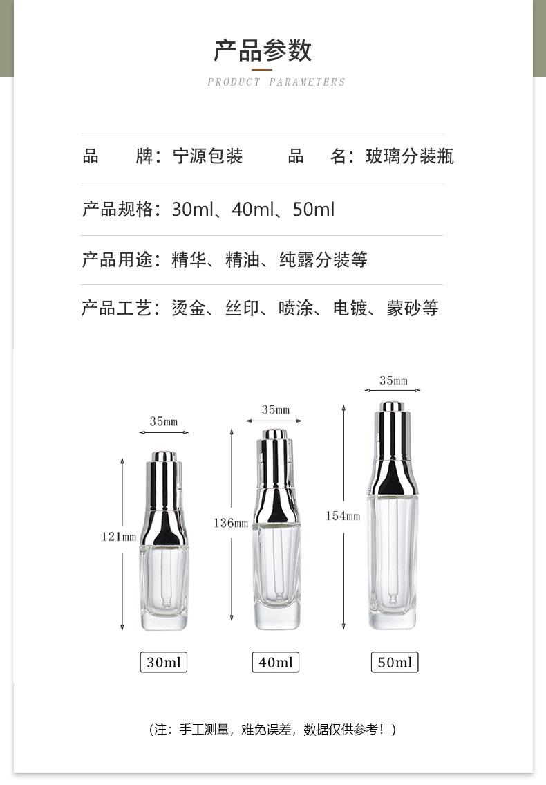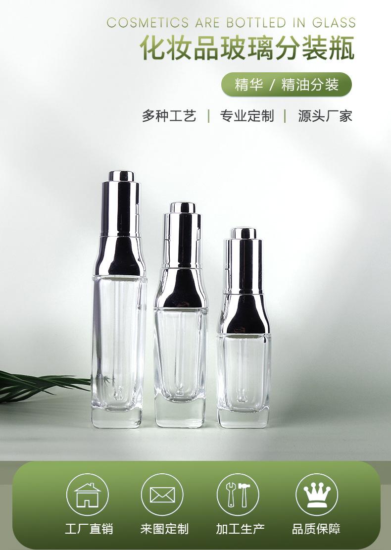 Compre Em estoque essência garrafa líquida 30ml quadrado manga de ombro conta-gotas garrafa de vidro 50ml cuidados com a pele líquido embalagem garrafa vazia no atacado no Joom.pro