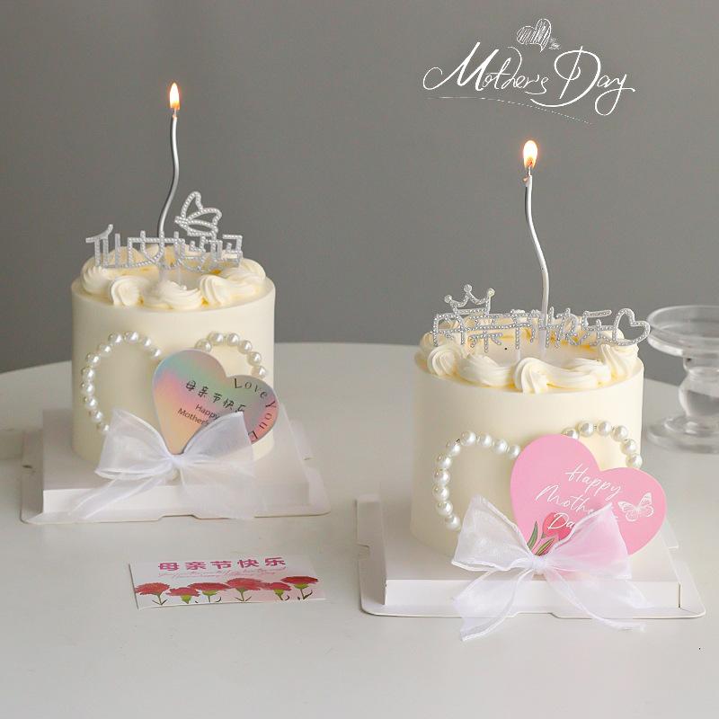 Net vermelho dia das mães decoração do bolo pérola cartão de amor diamante branco fada mãe feliz feriado plug-in