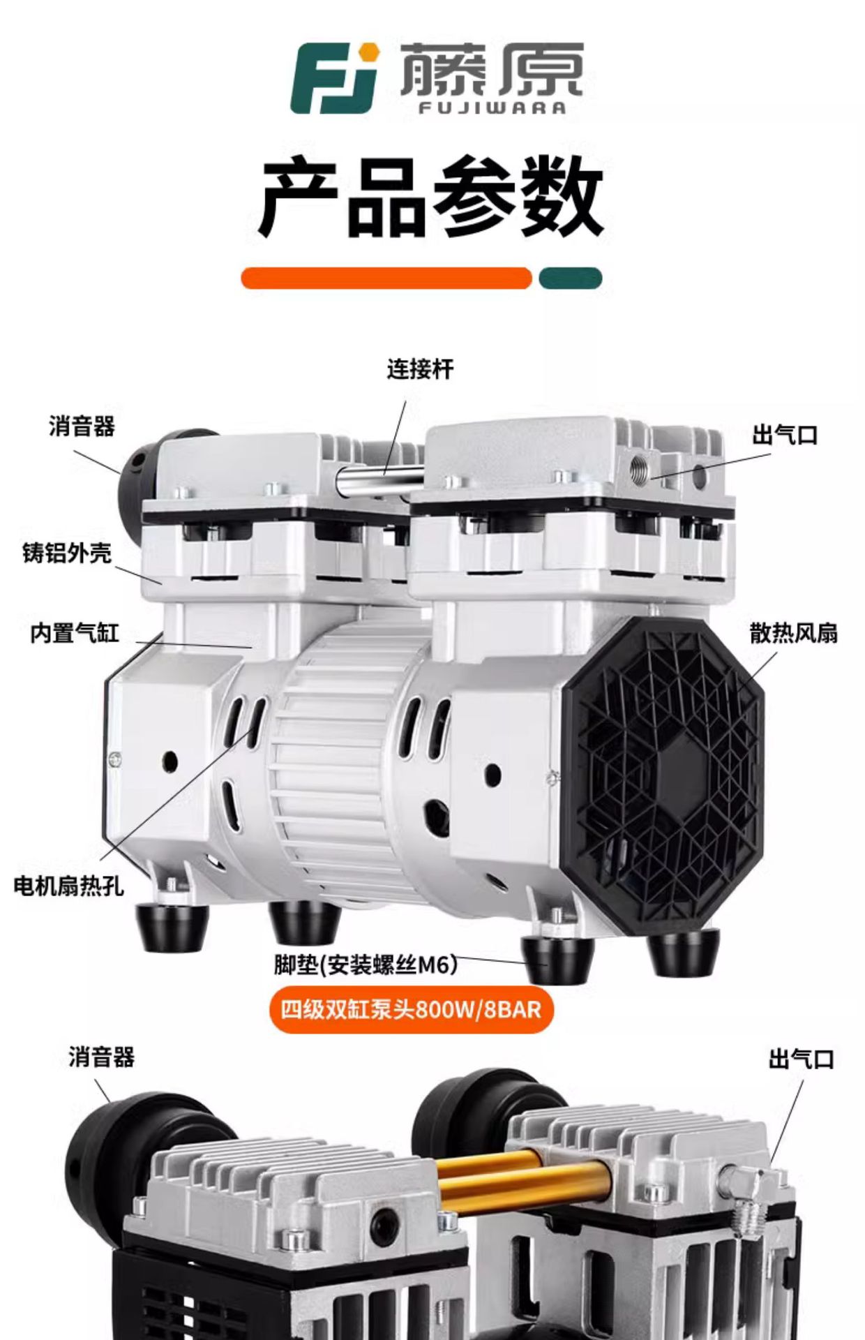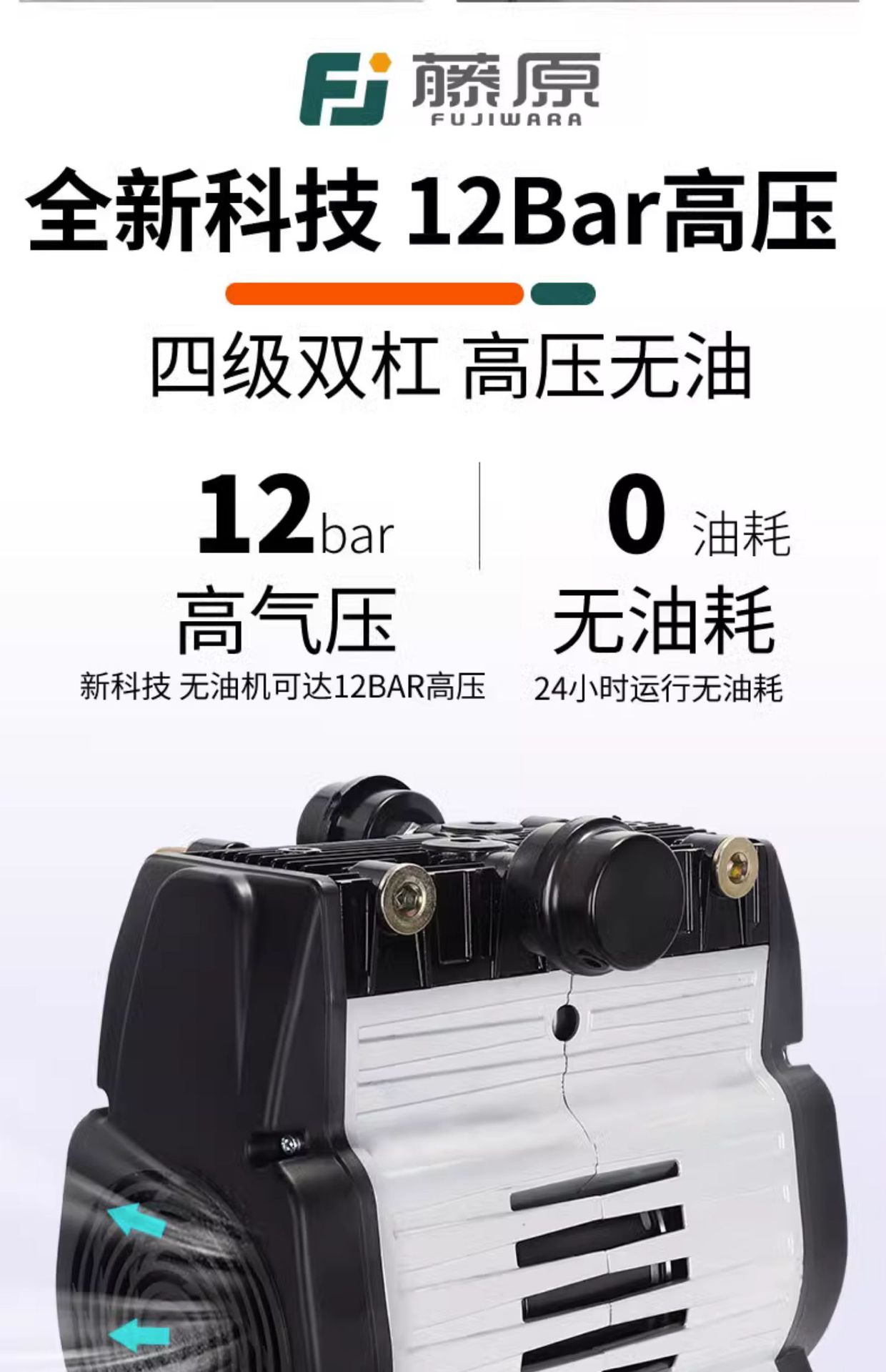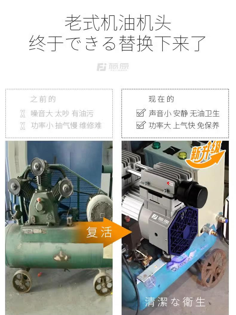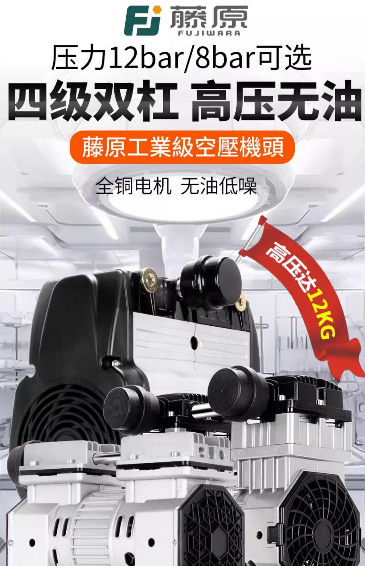 Cabeça do compressor de ar Fujihara sem óleo mudo compressor de ar industrial acessórios do motor do cilindro duplo grande deslocamento cabeça da bomba de ar de alta pressão