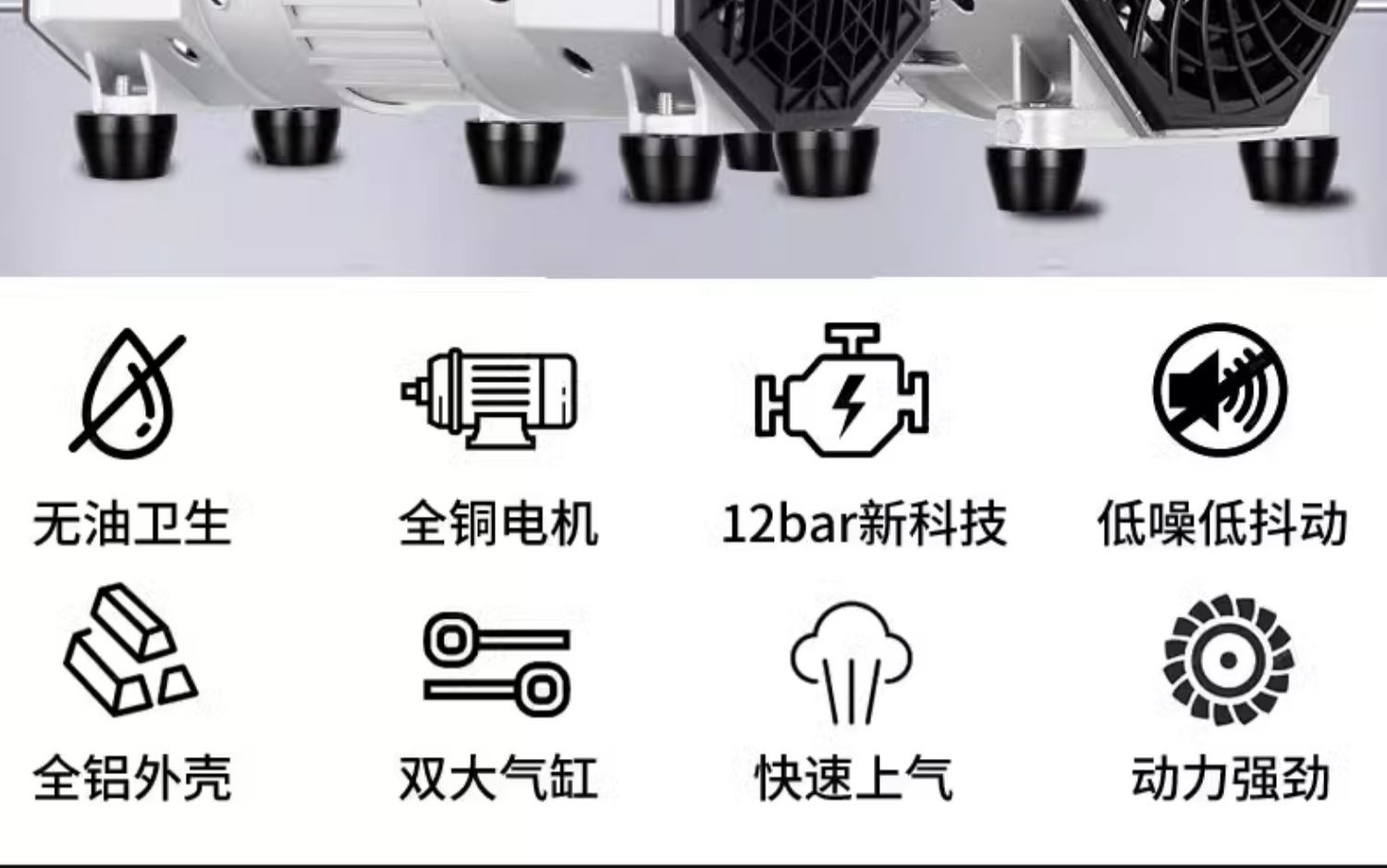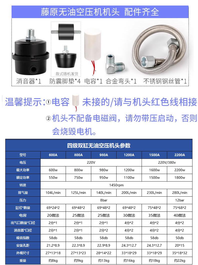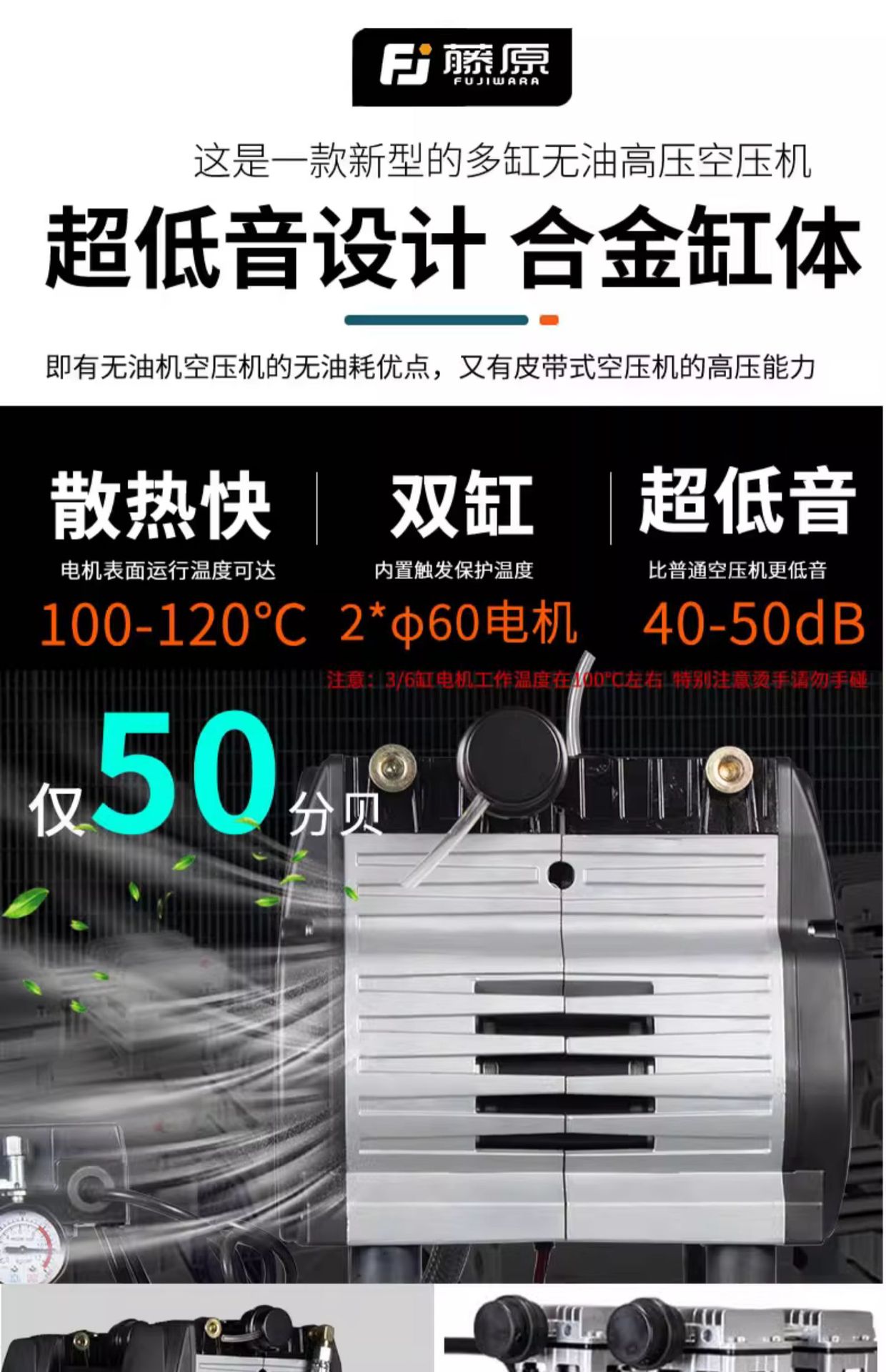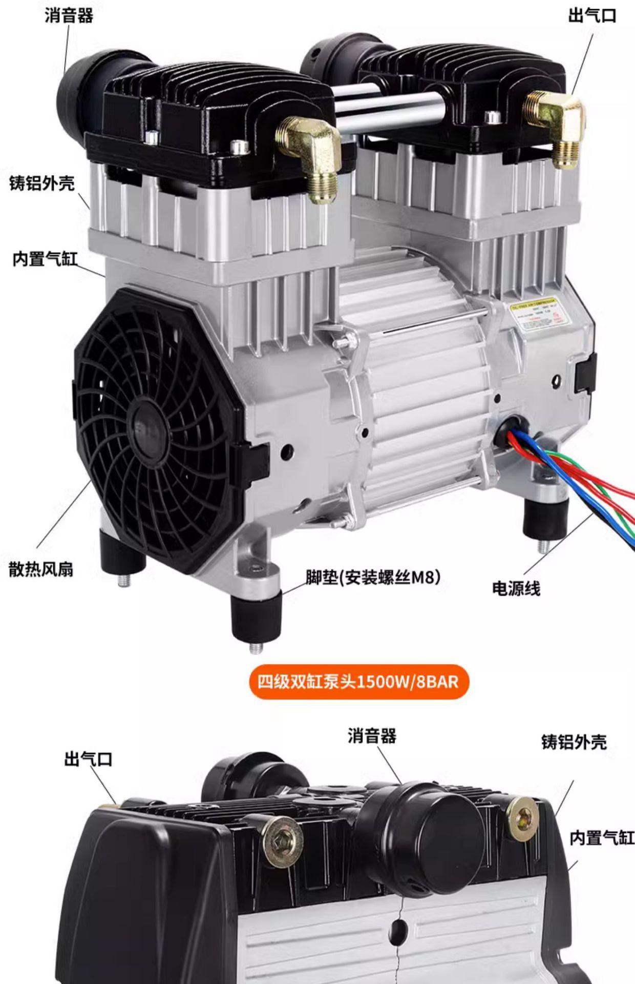 Cabeça do compressor de ar Fujihara sem óleo mudo compressor de ar industrial acessórios do motor do cilindro duplo grande deslocamento cabeça da bomba de ar de alta pressão
