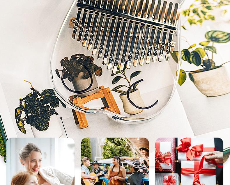 Piano de Polegar Kalimba de Cristal Transparente de 17 Notas Pode Ser Entregue com Acessórios Kalimba de Madeira Atacado Mini Piano de Dedo