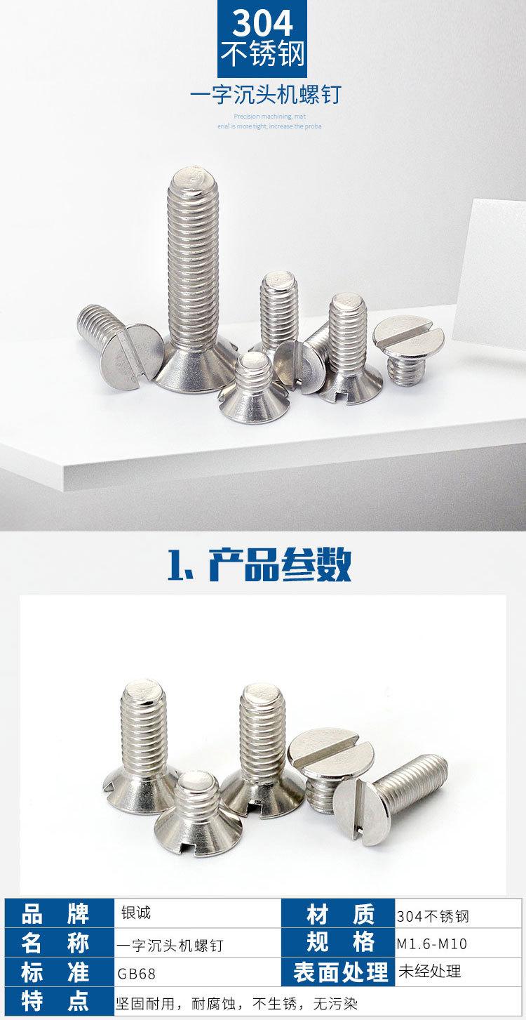 Parafuso com fenda de cabeça escareada M1.6M2M2.5M3M 4 304 aço inoxidável GB68 parafuso de máquina de entalhe plana