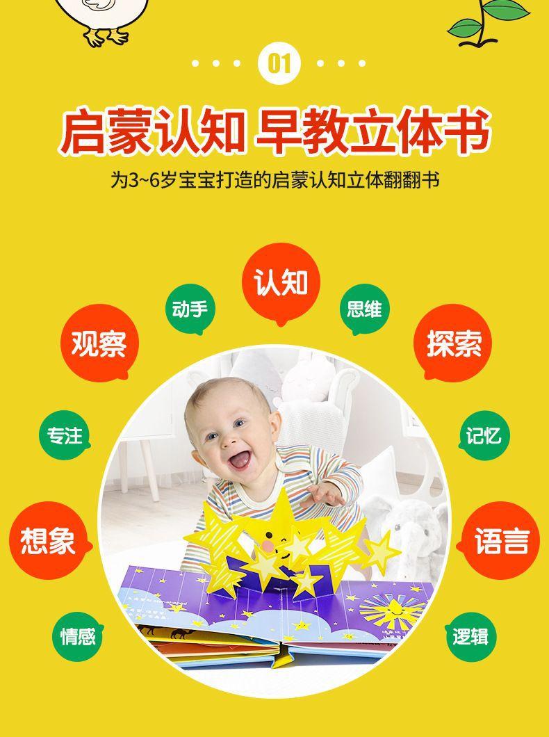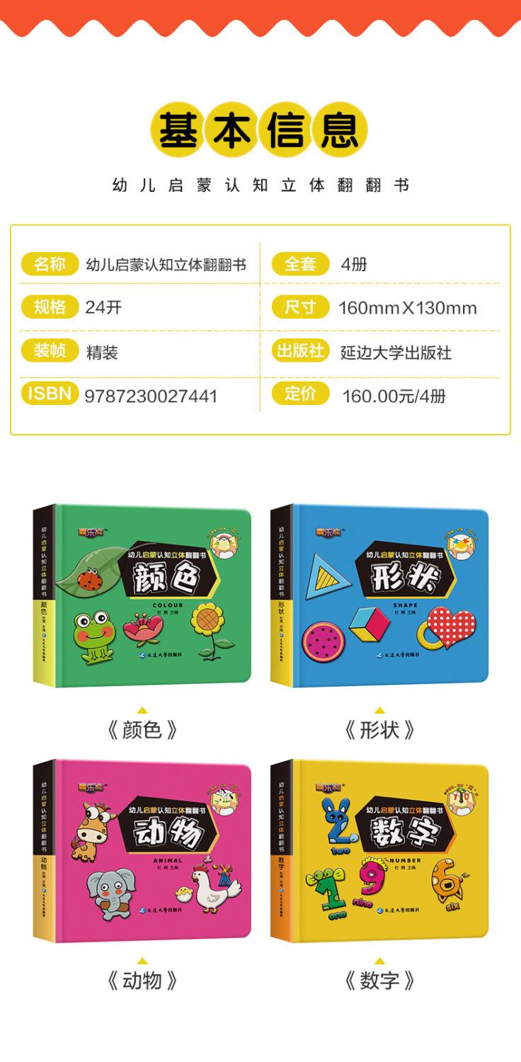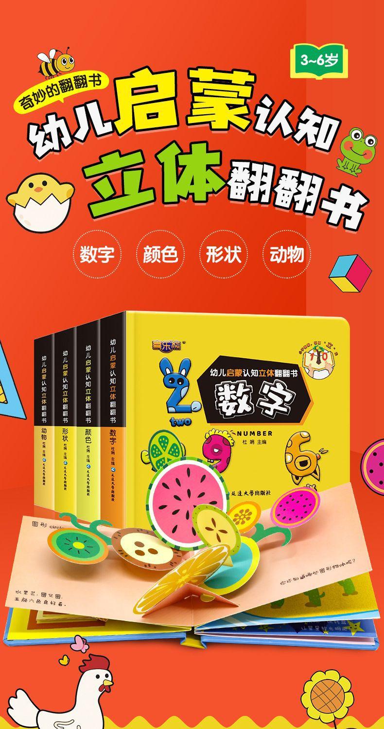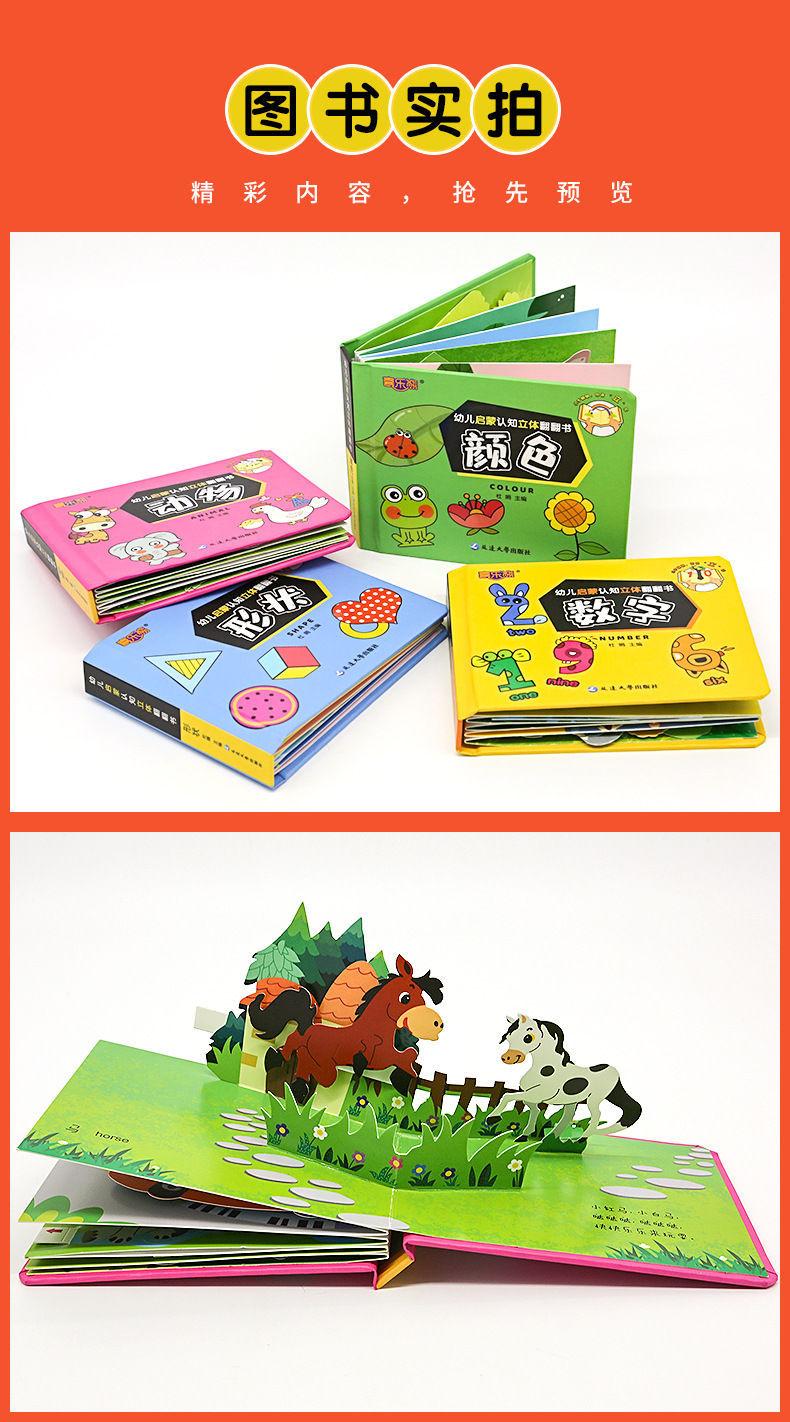 Iluminação infantil Cognição 3D Flip Books 4 livros de capa dura ilustrados 0-6 anos de idade Bebê Educação infantil Livros Não rasgue
