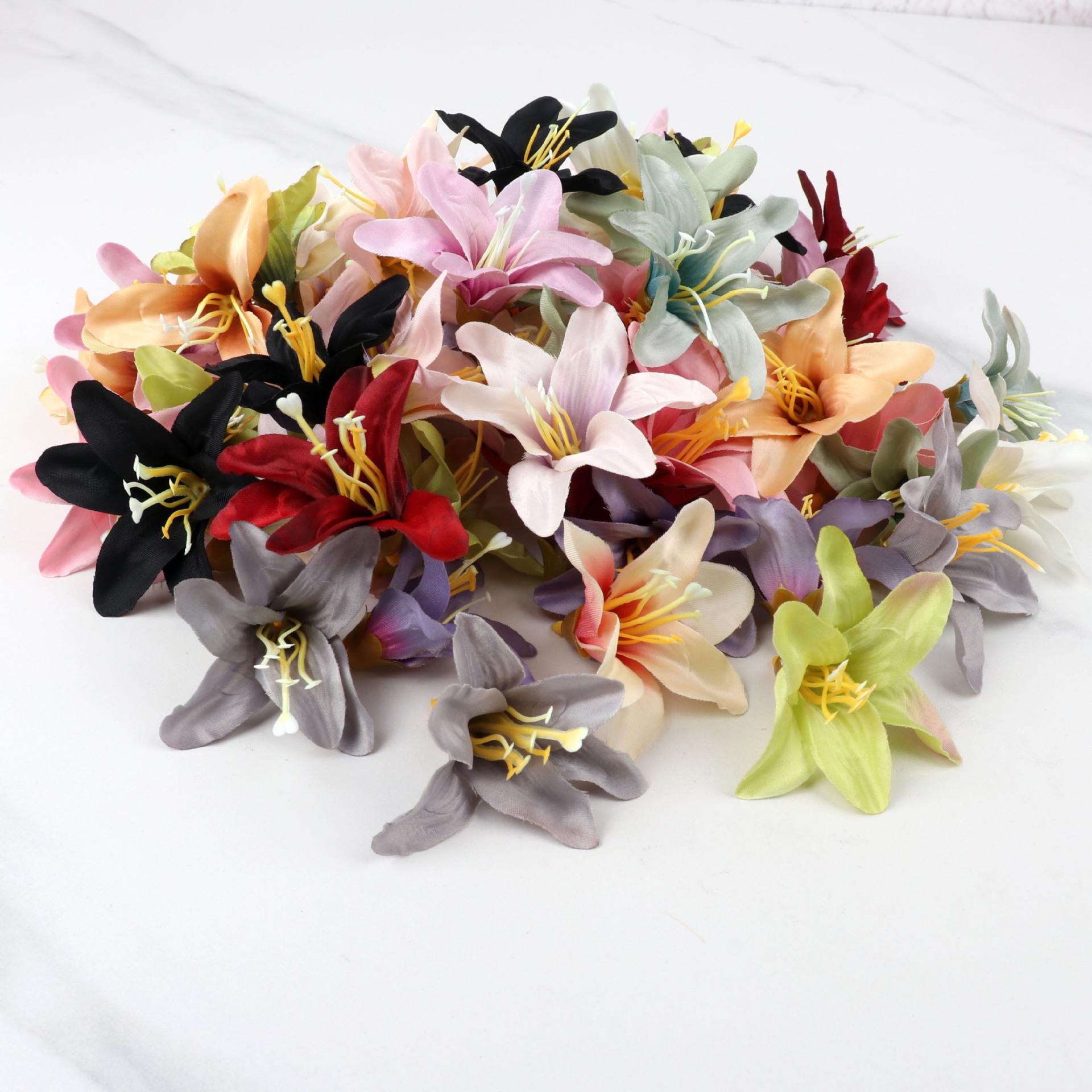 Flor de lírio artificial flor de seda artificial cocar de cabelo acessórios de cabelo material diy acessórios artesanais decoração de casa de casamento