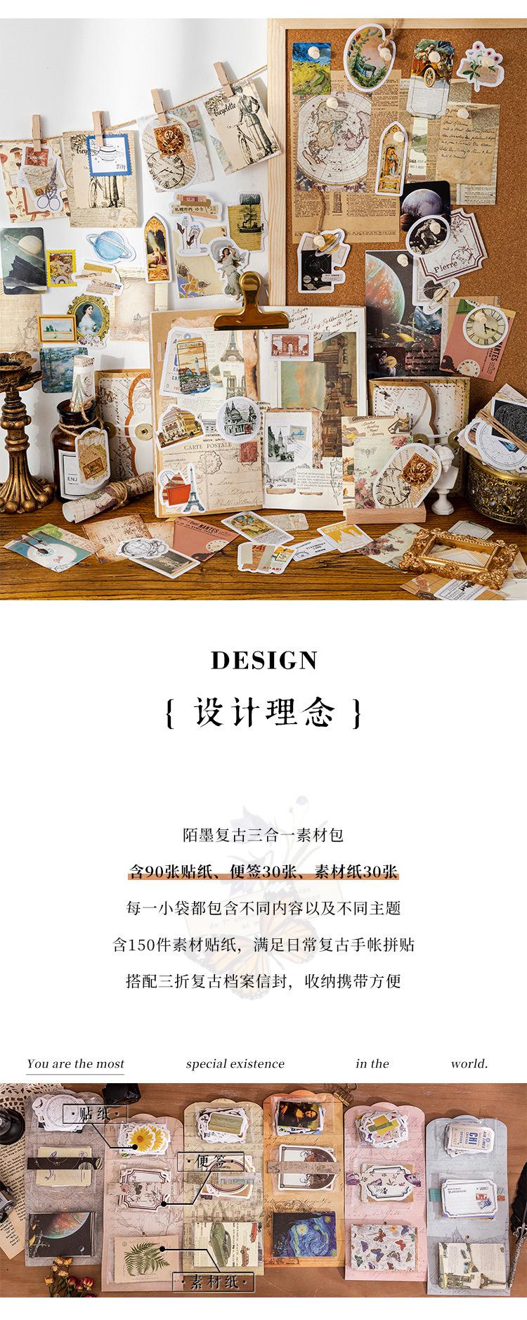 Bolsa de material de tinta Mo retro grande coleção série fresco retro arte manual colagem faça você mesmo papel de apoio 6