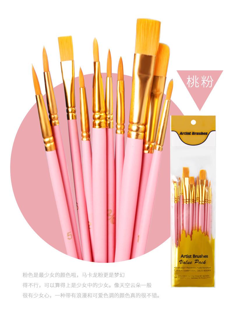 Vendas diretas da fábrica 10 haste de madeira escova de óleo terno pintura de arte aquarela guache pintura a óleo pincel terno atacado